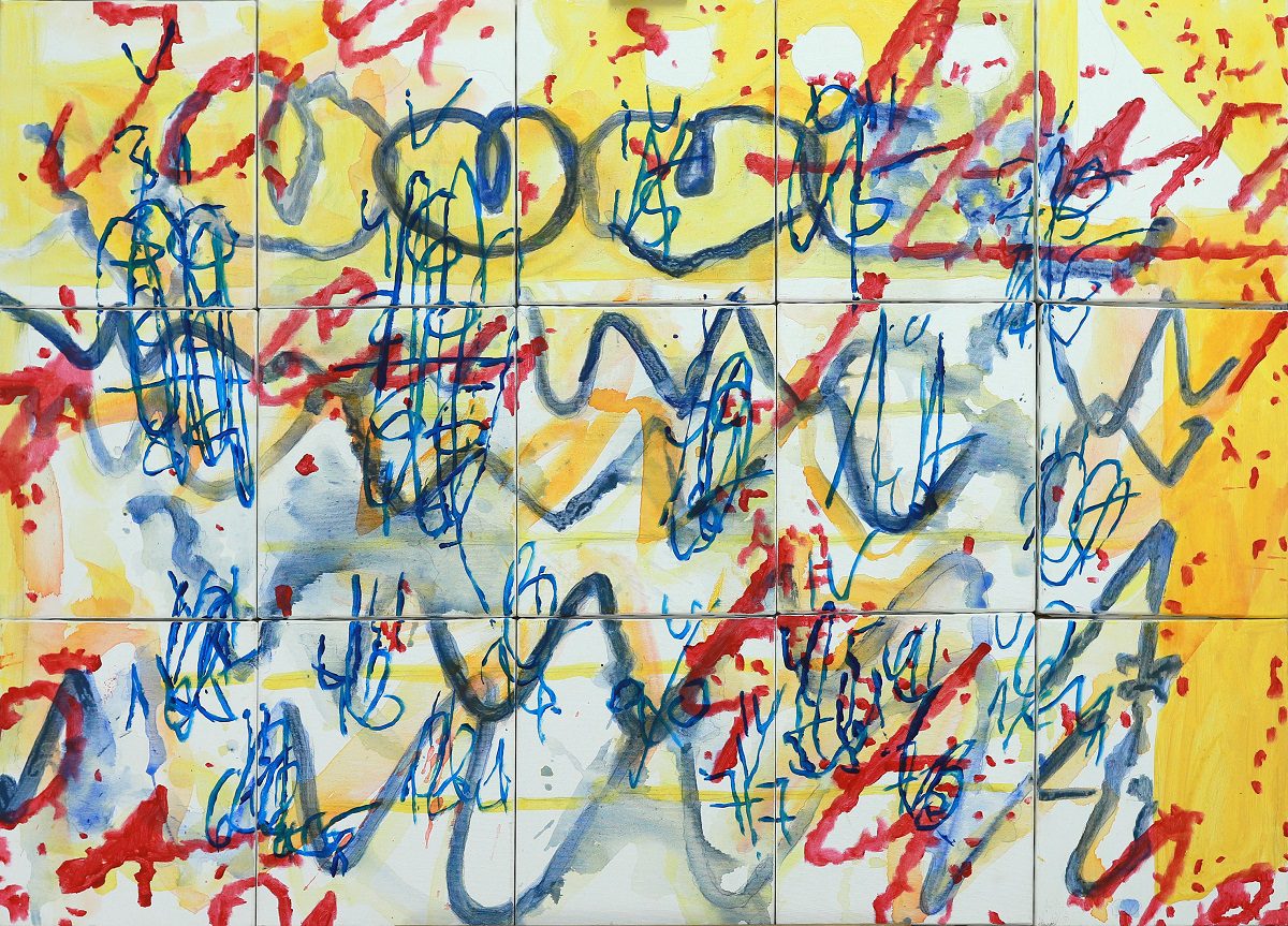 Slike Aleksandra Dimitrijevića proizlaze i oslanjaju se idejno, formalno i strukturalno u početnom stadijumu stvaranja na Artefakte, umetnikovu kolekciju pronađenih crteža nepoznatih autora, koja istovremeno funkcioniše kao integralni deo njegovog rada (1). Umetnikova definicija Artefakata kao arhiva crteža / kolekcije dokumenata, govori nam o dijalektičkom odnosu prema tom korpusu radova. Crteži, na kojima su zabeleške tokova i rezultata različitih društvenih igara i životnih situacija, su skup srodnih predmeta čije se osobenosti i svojstva čuvaju kao zasebna celina, istovremeno predstavljajući otvorena polja čija dokumentarnost postaje deo umetnikove svakodnevice i njegove likovne metodologije. Svi naredni nivoi slike nastaju svojevrsnim likovnim intervencijama koje paralelno transponuju i/ili dekonstruišu prvobitnu dokumentarnost.