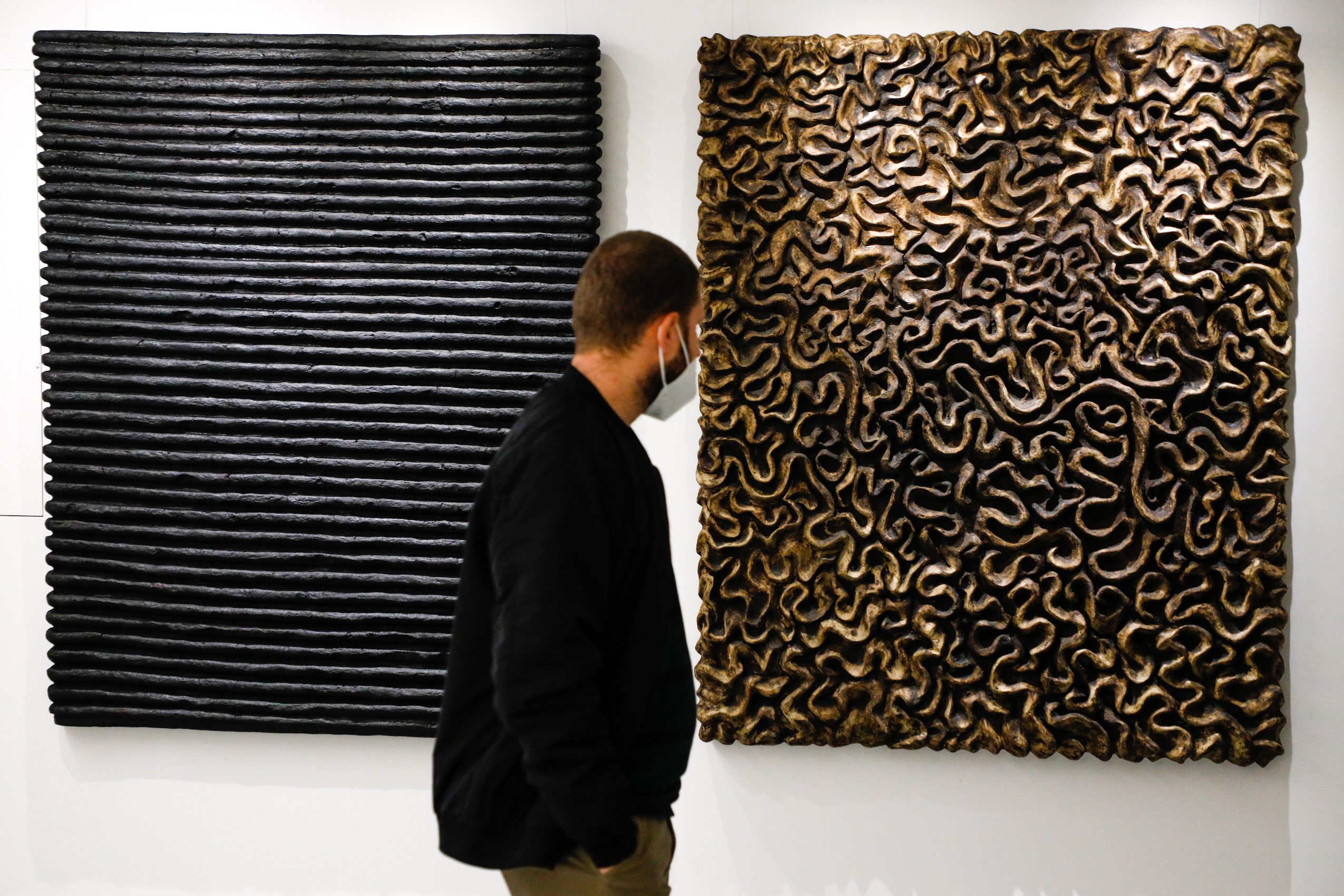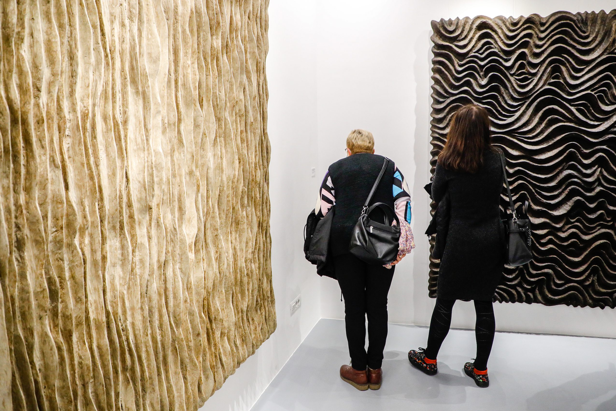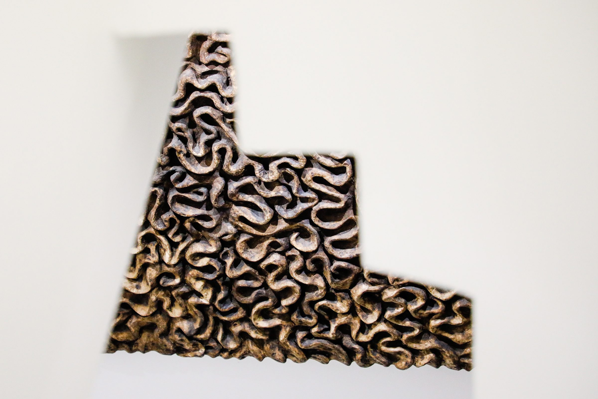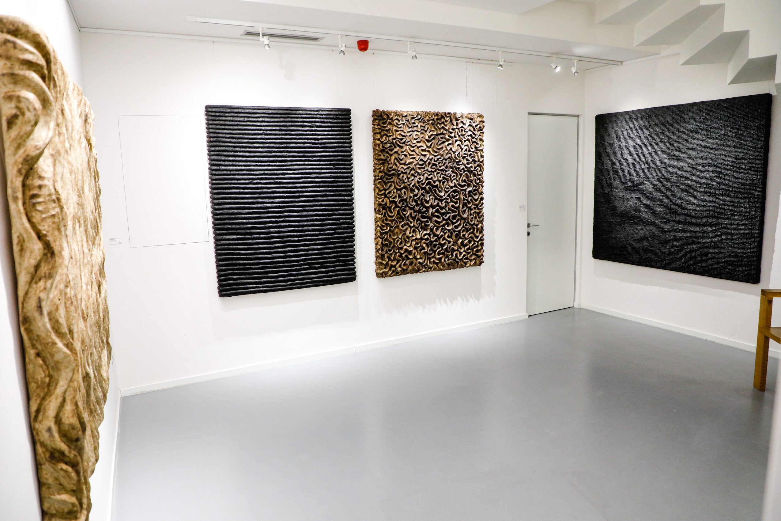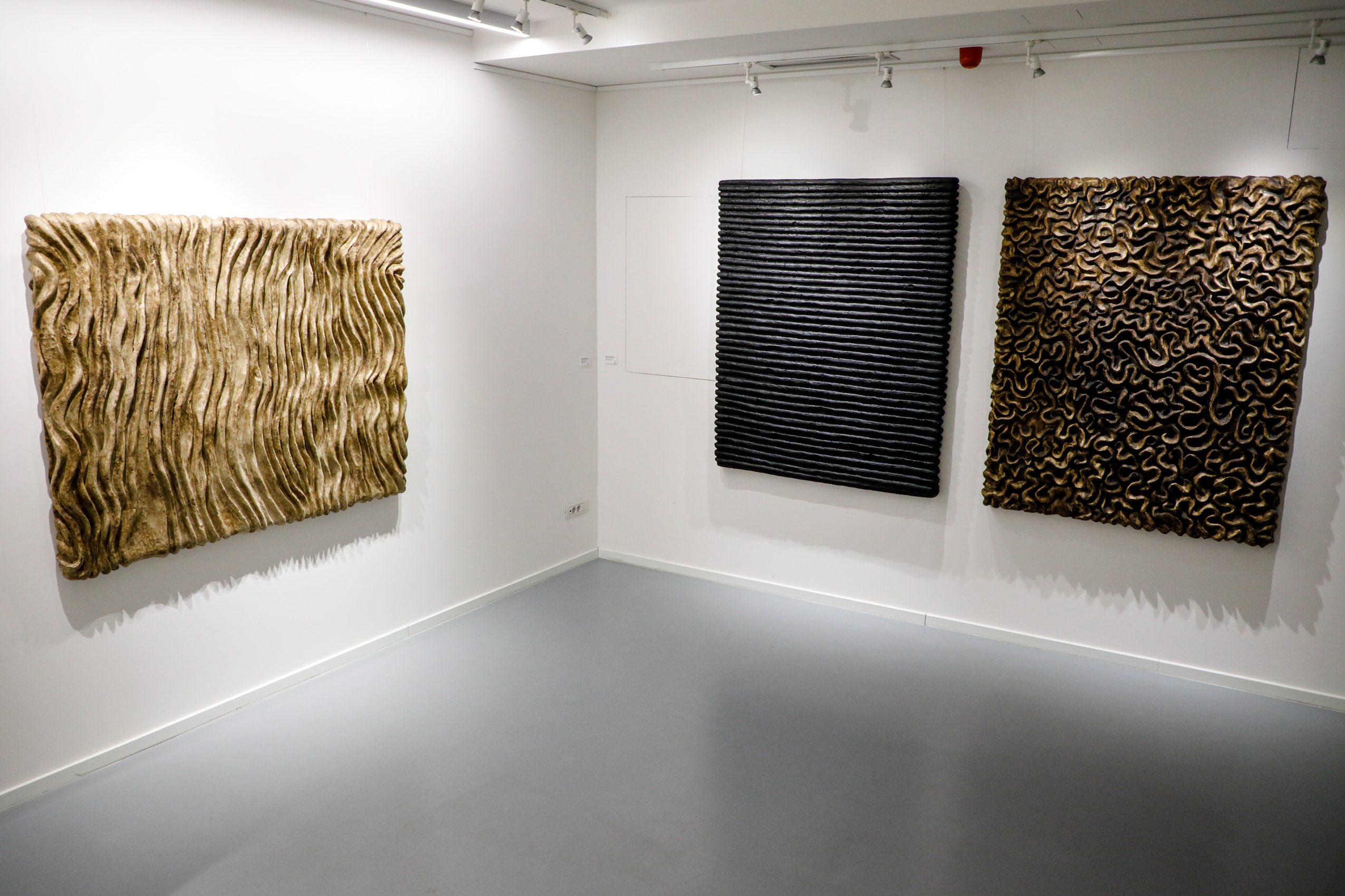 Warm air, warmed by the stove permanently burning, heats the space of the artist’s studio. Lying down or standing upwards, just begun or almost born, massive objects swollen with the matter, are seemingly tranquil in their refuge or succumb to the slow action of the elements of air. There, in the studio of Andrea Ivanović Jakšić, snug in an alley of a small town, the enigma of creation is happening – a natural process becomes alchemy. The air is sucking out the dampness from the piled up prepared matter thus simultaneously producing art. Since it is in charge of their lasting quality, as soon as it has dried them and made them stiff, the air surrenders Andrea’s unusual abstract reliefs to the subsequent phases of fashioning. The artist spends whole weeks and months working on one of her object-paintings. During that long and physically very demanding process she establishes a relationship to nature as a living entity to which she also belongs. This relationship breeds an artistic confidence in nature as collaborator – patience with the air working slowly and also the highest possible respect and care for the fire that brings the most profound transformations in her work. From the earliest steps in art Andrea has been relying on an instinctive and contemplative link with nature and her creative personality finds manifestation only in the dynamic symbiotic relationship with natural matter. In the warm air of her studio, bent over a semi-dried object, she feels that the creation is equally artistic and organic; that it had been equally shaped both by her ideas and her gestures, as much as by the (in)visible natural forces that operate on the hidden molecular level.