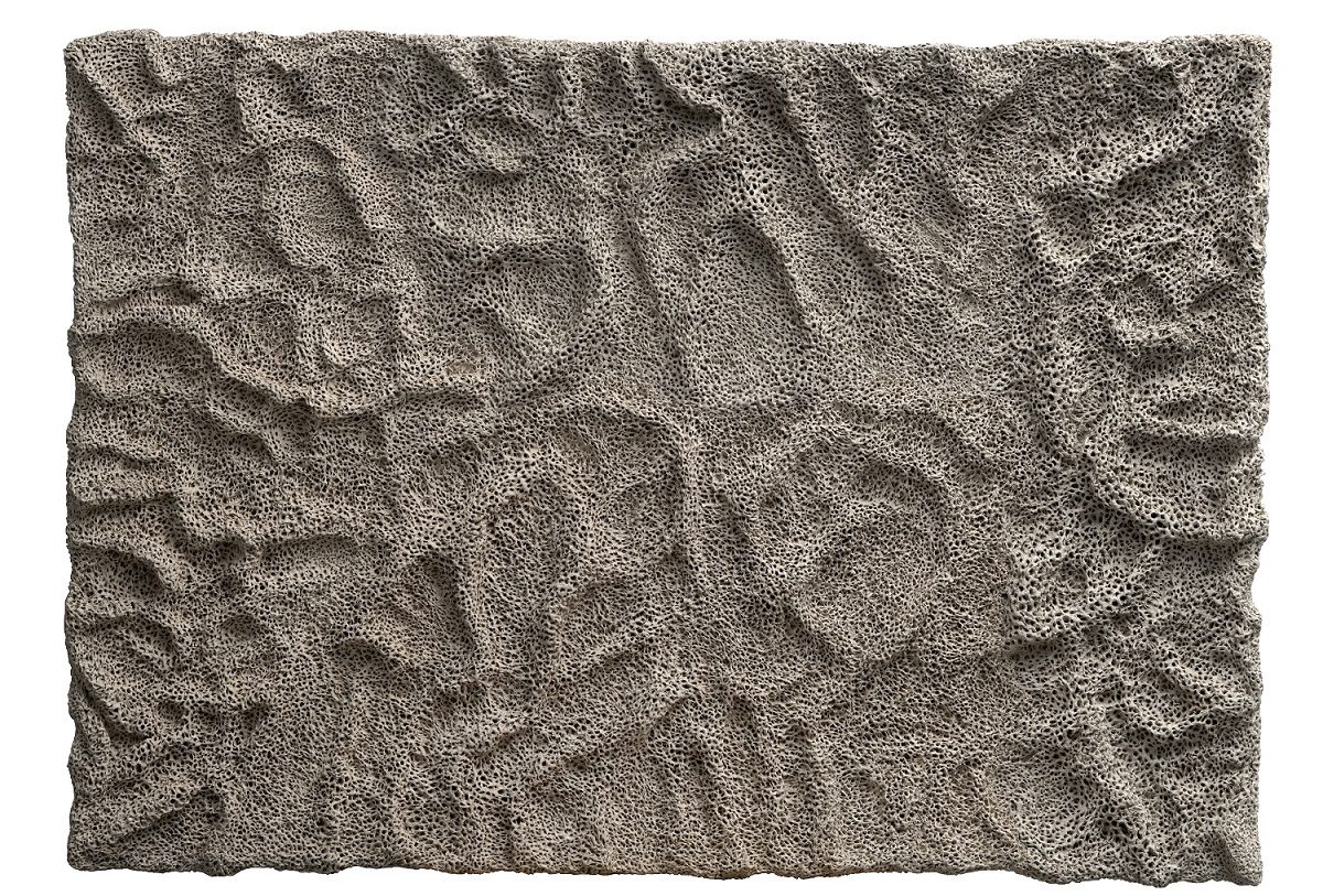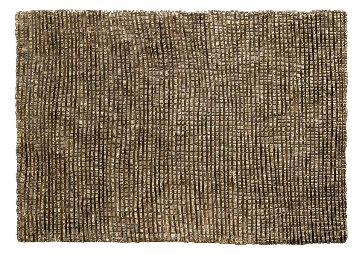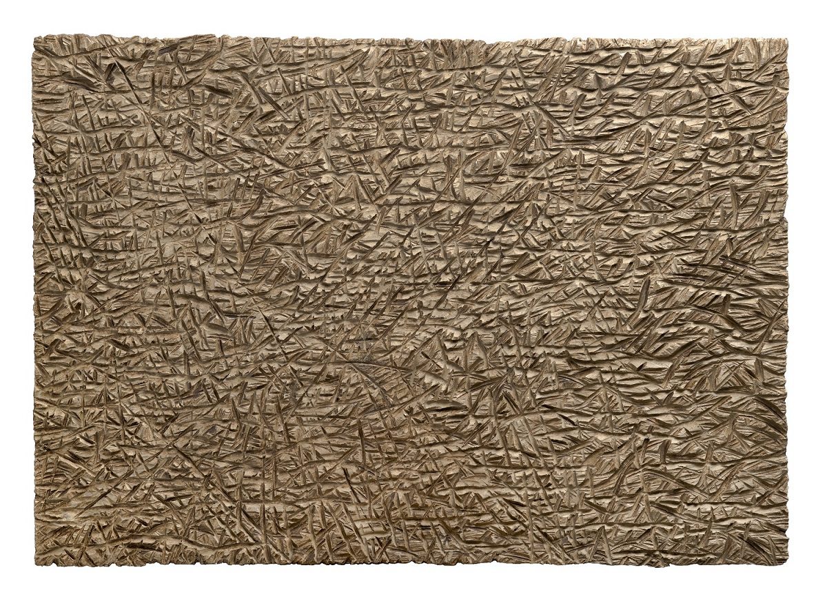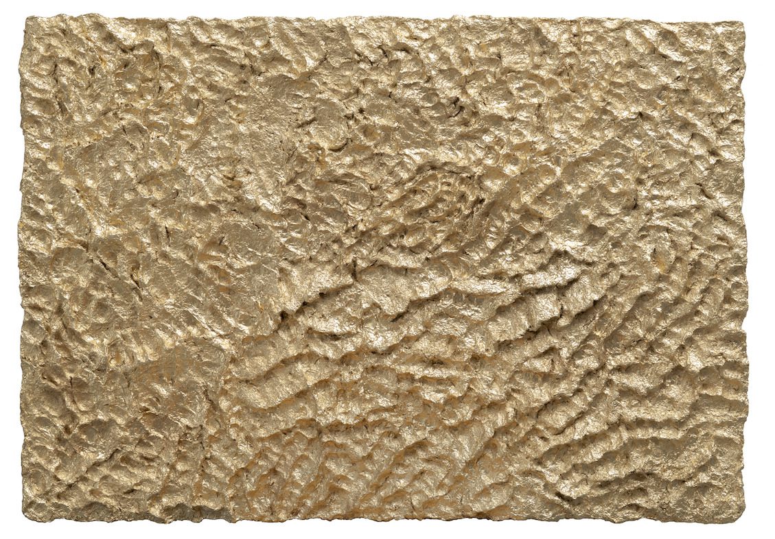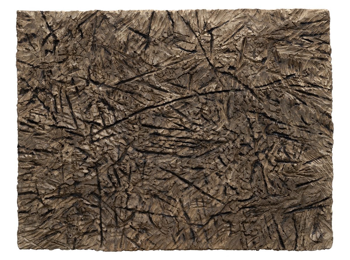 Creation of art is profoundly linked to Andrea’s handling of natural matter. The material of which the works are made consists of decomposed and moistened paper, mashed and applied in thick and heavy layers, and then transformed into abstract organic-like shapes. Natural materials (in other cases she uses also cotton, wood and wax) are submitted to controlled influences of natural elements – air, water and fire (moistening, drying, burning). At the same time, the created matter is shaped by extremely physical processes of hand molding, scratching, grinding, flaming, hammering. Andrea’s making of art is a long and patient process of fighting and hugging the Nature – applying her existential feelings in the very creation of art.