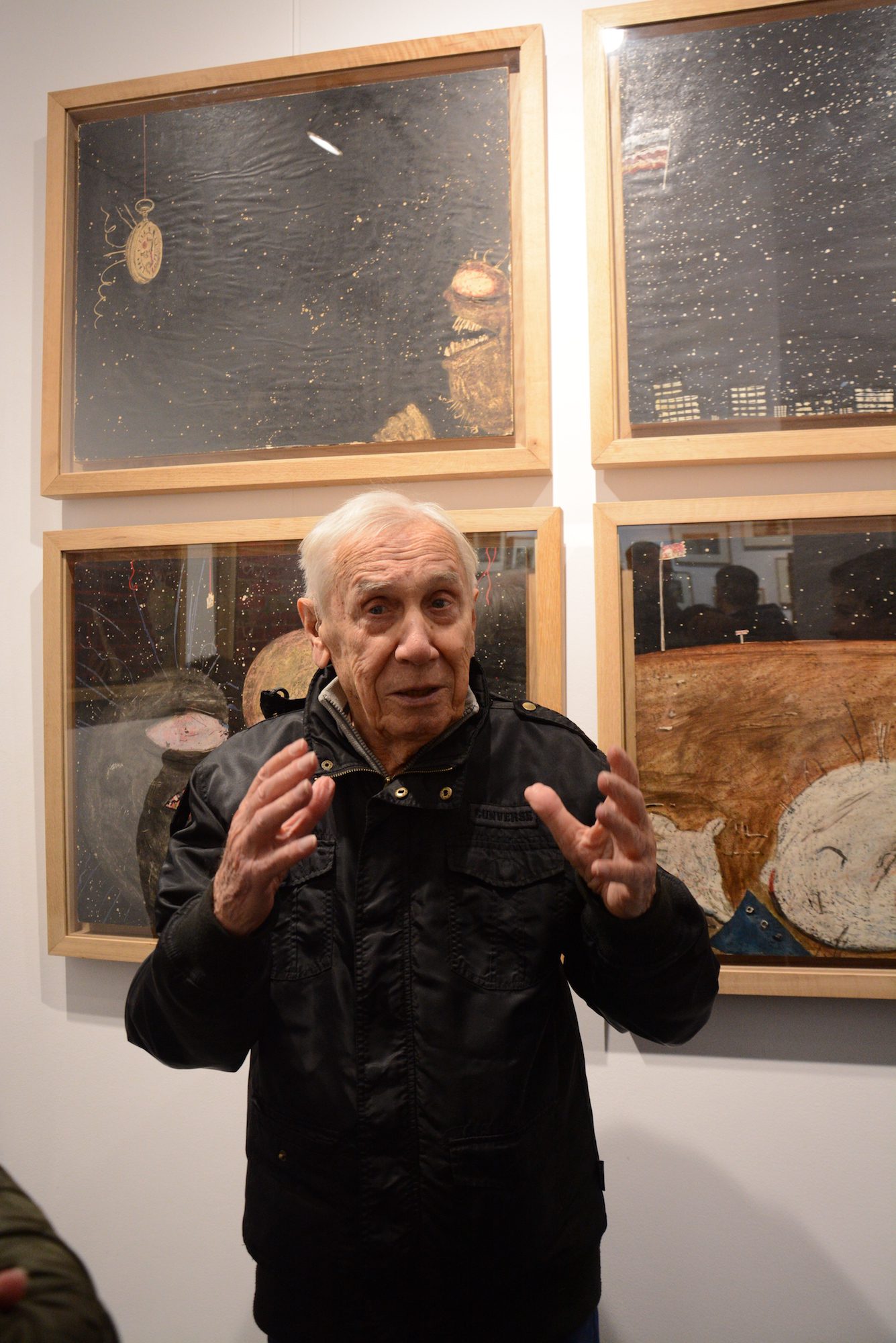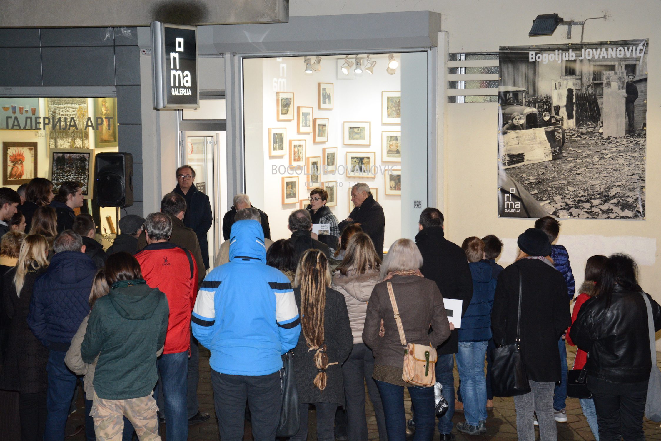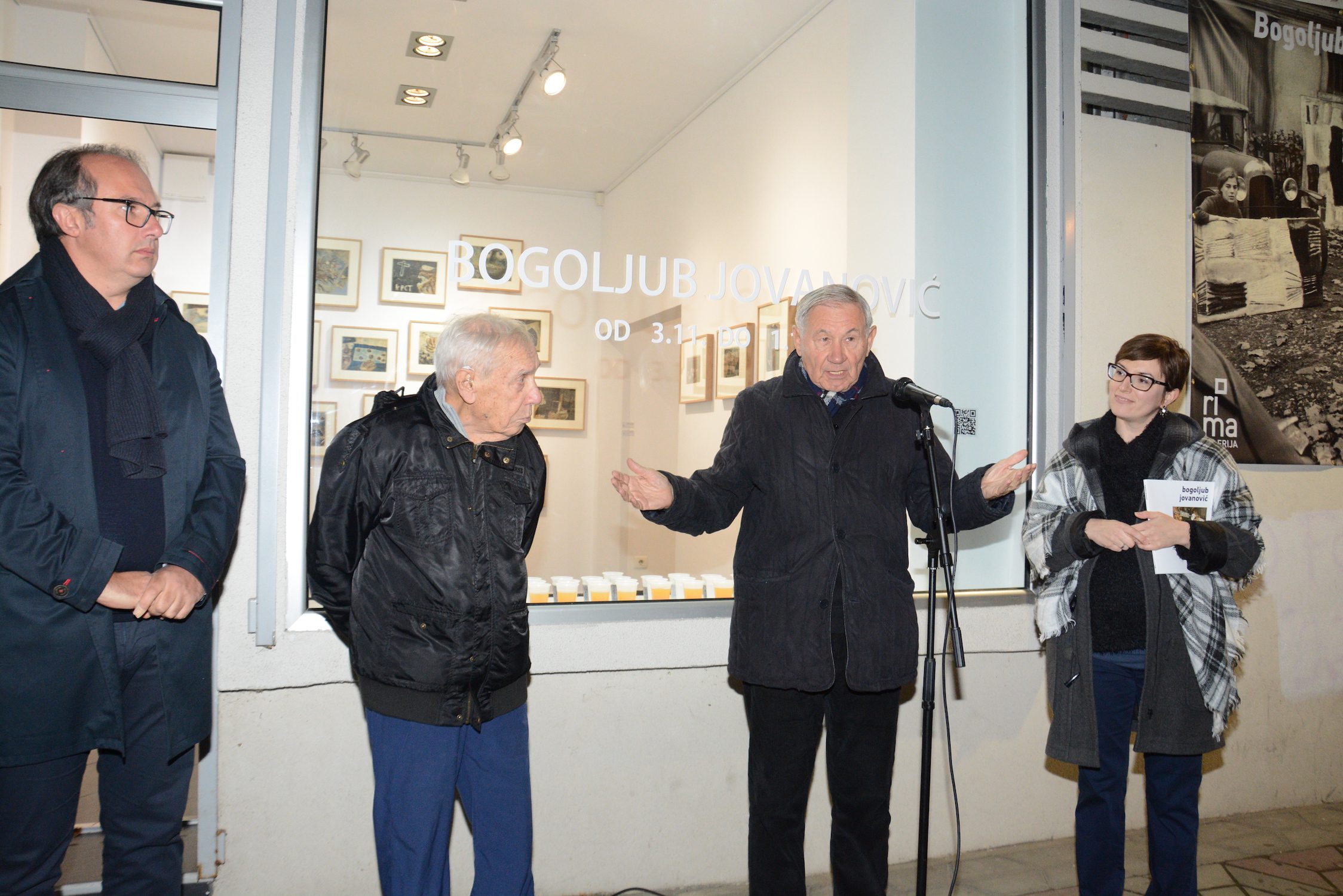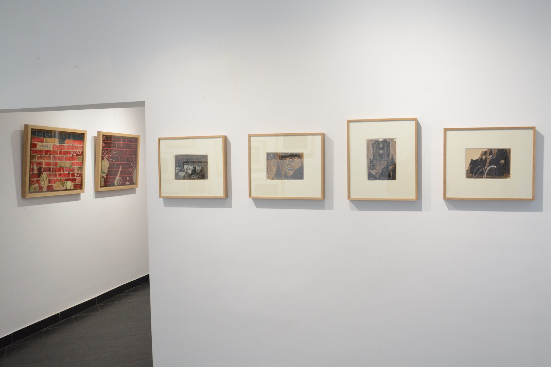 At the exhibition in the Rima Gallery, with only a few exceptions, there will be shown for the first time his small format works on paper, seriously damaged but subsequently restored exceptionally well so that they can now be definitely included into the artist’s overall opus. Their titles are: Tomorrow Will Be Too Late (self–portrait), Everyman for Himself, Sour Puss Magicians dated on the back 23 XI 51. Then there are Orator’s Gesture, A Big Bite, Voice, Syringe, The Spring Is Springing Forth, Seven Seals, Underlined, Wake, Dok…(incomplete title), Now I Am Alone, All That Glitters Is Not Gold, Unnecessary Harshness, Cross, An Honest Man, Tears, Useful Trick, Lapsus Lingue, A Merry Heart Bears No Evil, At the Same Task, Proverb I, Proverb II; all the titles are written in big Cyrillic letters over the scene and there are some untitled ones. They all belong to the artist’s early Belgrade period from about 1950 to 1953, to the cycles of Proverbs and Magicians or to the works made at the same time and related to them, with all the characteristics of thematic and visual features of those cycles, confirming and enhancing the appraisals of Jovanović’s art from its Belgrade beginnings and his first shows from 1953 supported by Zoran Mišić and Vasko Popa in their catalogue prefaces.