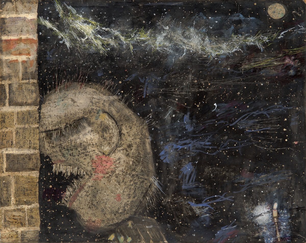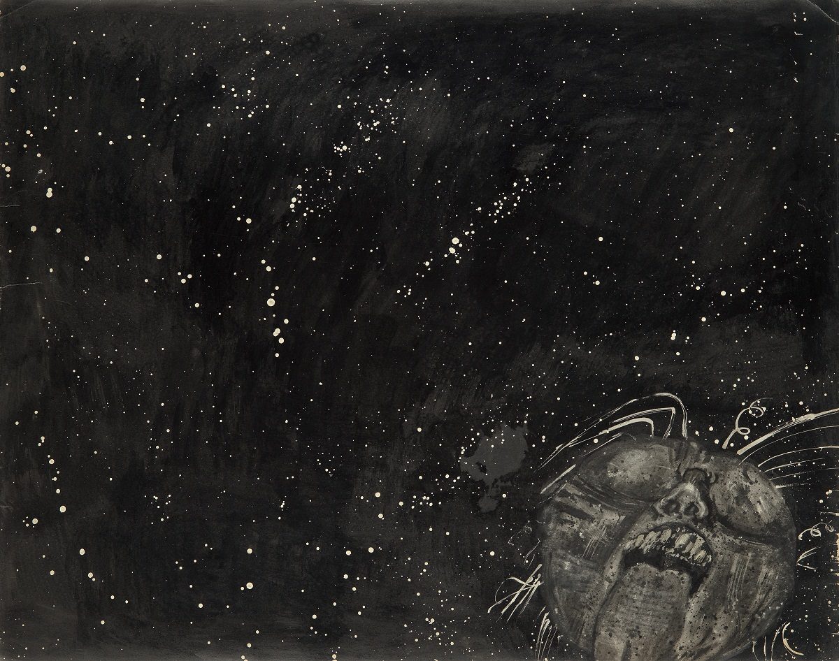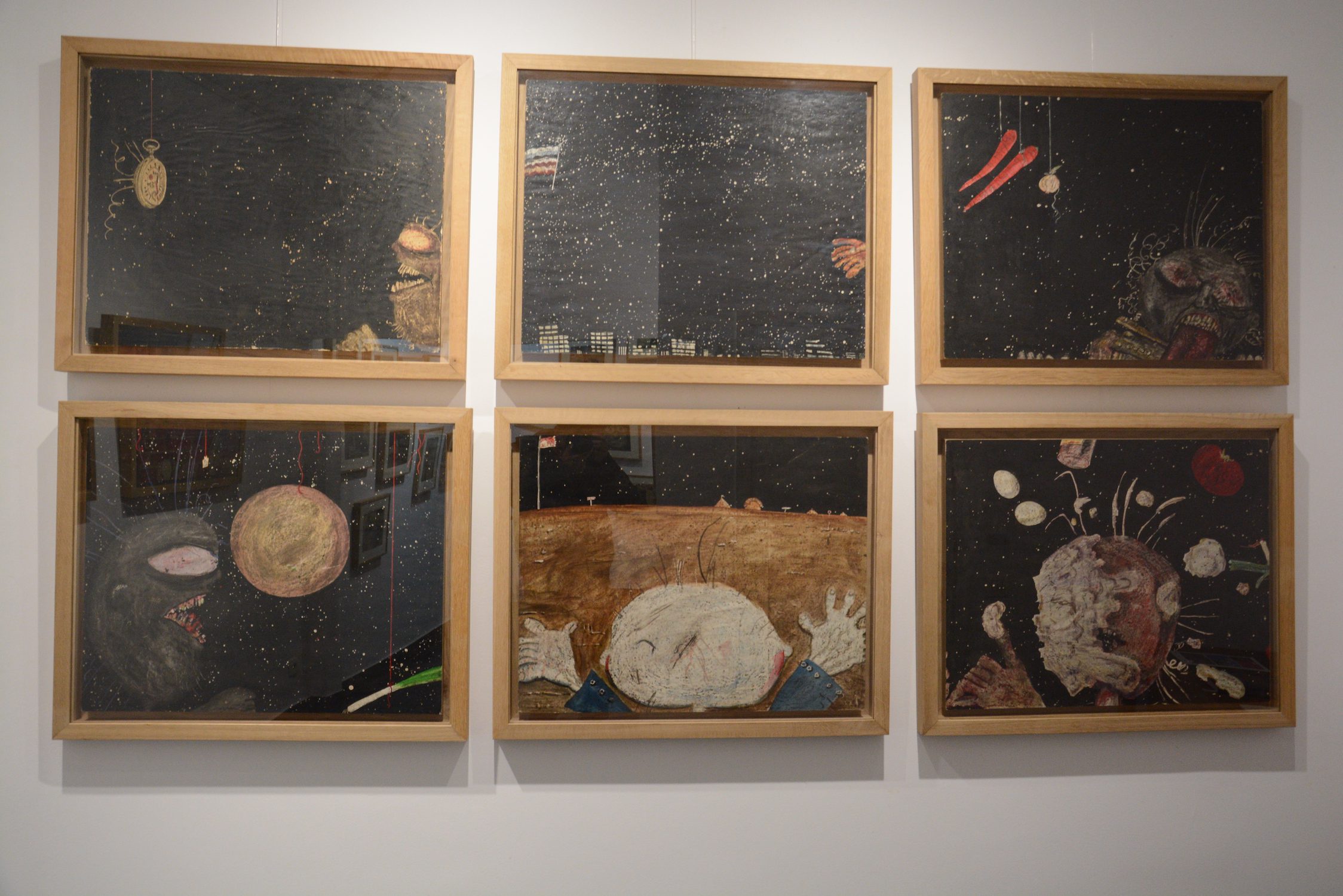 The series of bigger format works (most frequently 58.5×73.5 cm) in the technique of coloured ink and wax on paper, entitled A Eunuch Prince, Astronomer Punished, Stupid Cupid, Slight Error of Judgememt (the only one precisely dated on the back 15 II 1962) – and judging by some titles in English – were most probably made during the first years of artist’s stay in America, in the early 1960s (and not the seventies and eighties). Like other works from the same period these show scenes motivated by the reasons known only to the artist and confront the viewers with the dilemmas that cannot be solved but also make them aware that they are in front of an opus of irresistibly convincing and uncontroversial values.