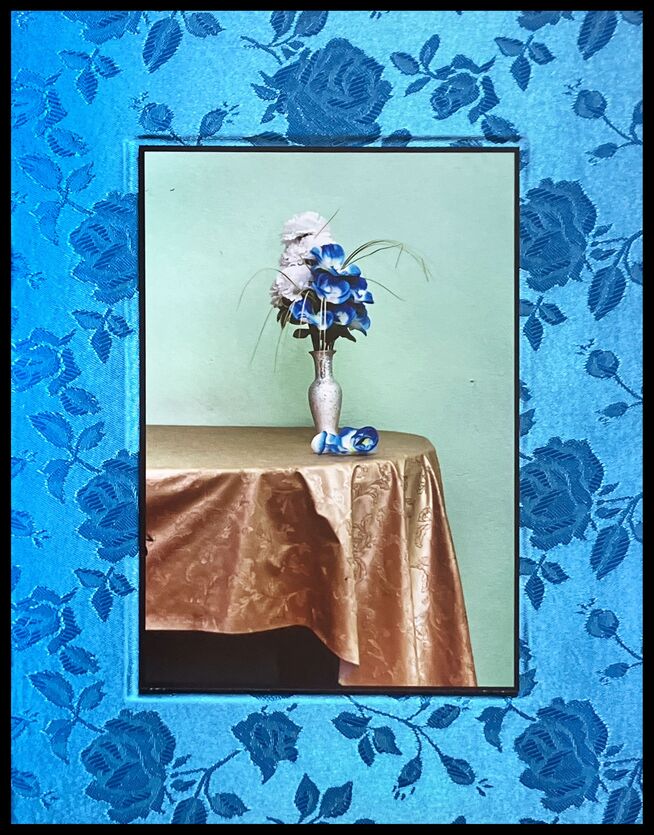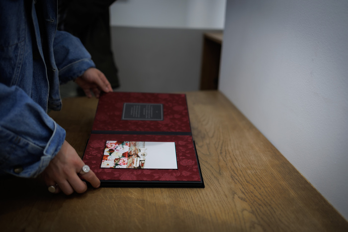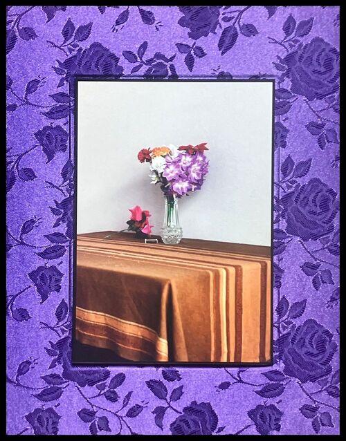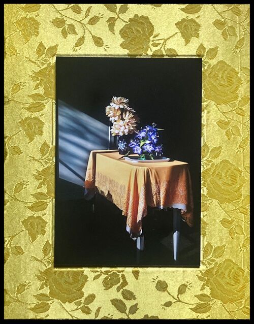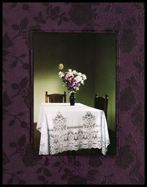 When one enters the gallery, filled with light, one observes the photographs in a regular way of viewing the world of objects. There is also the book as an intimate collection of memories, followed by the verses from Keats’ La Belle Dame Sans Merci. The photograph frames are covered in silk, implying the shroud which heralds passage.