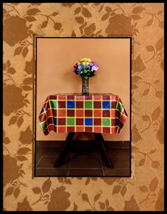 In rituals, that kind of duality has the role to connect life and death, to realise their fil rouge. The tomb is the “eternal house”, a continuation of the domestic space into the new place of residence. The symbolic continuation of the gathering at table or at the altar bringing offerings. The aesthetic expression of the colours and décor makes up a counter-balance, an addition to the things not present in the other world. This anthropological-ethnological phenomenon is caught in the photographs of Dušan Đorđević at the moment when daylight surges into the space and therefore emanates melancholy. Through the radiation of colour or a possible symbolic associative moment, it resembles the former life, imprisoned and petrified with finality.
