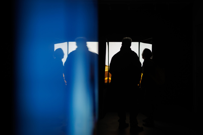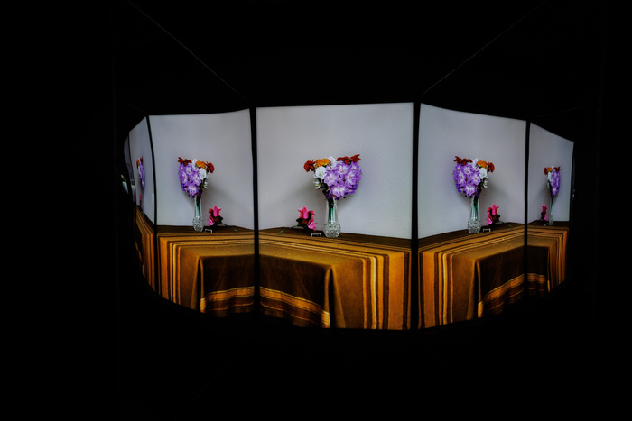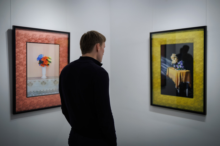The mise-en-scène, showing the works in a harmony of rhythm and proportion, light and darkness, makes up an extended reality of photographs and invites the presence of the viewer.
