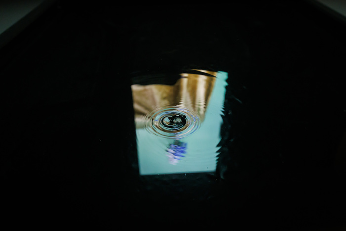 In going downstairs, we enter darkness, plunging into our own selves… The photograph within the light box surpasses the genre and refracts light in its own double reflection in the water into an experience of time transient and unstoppable.
