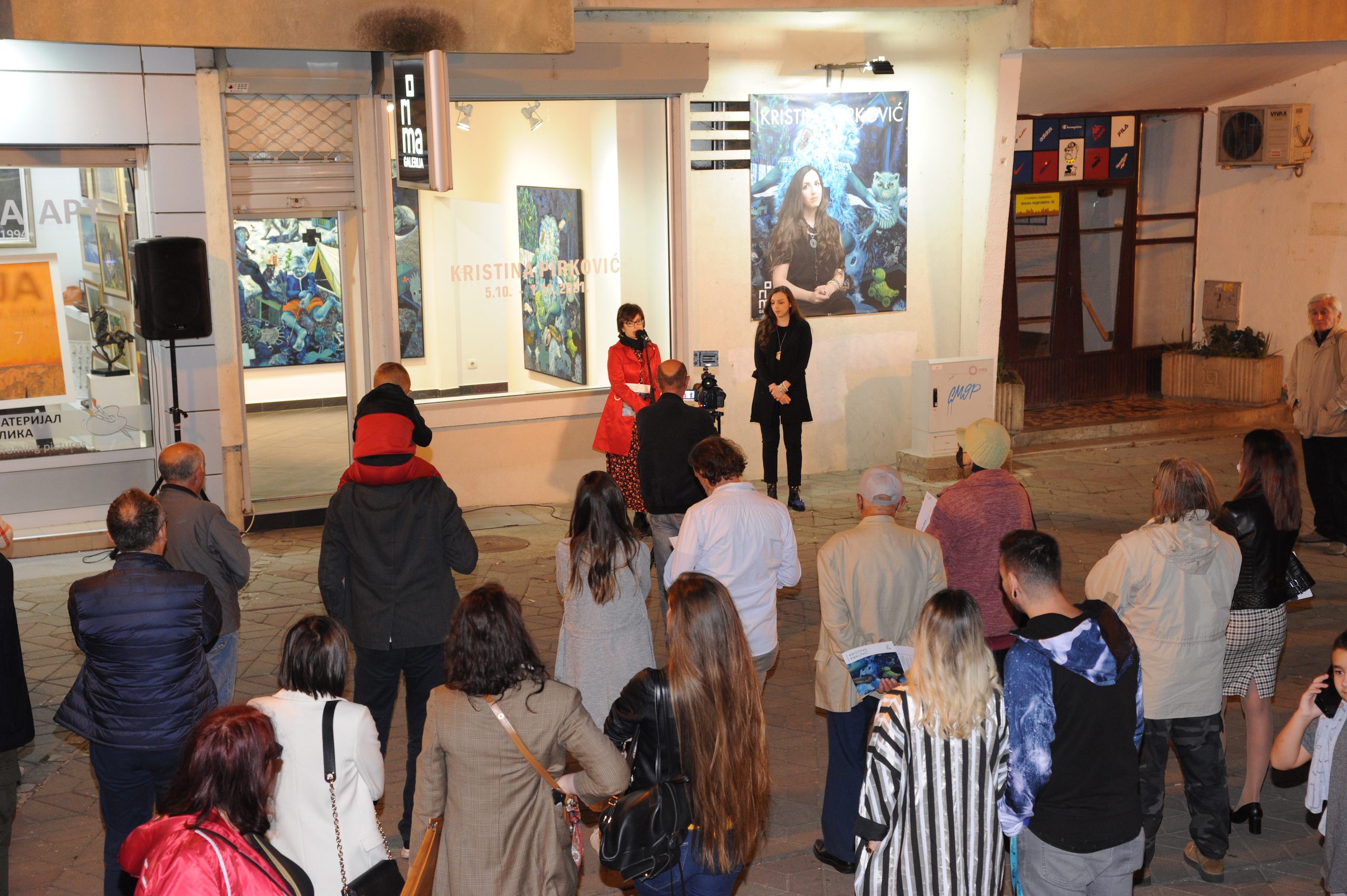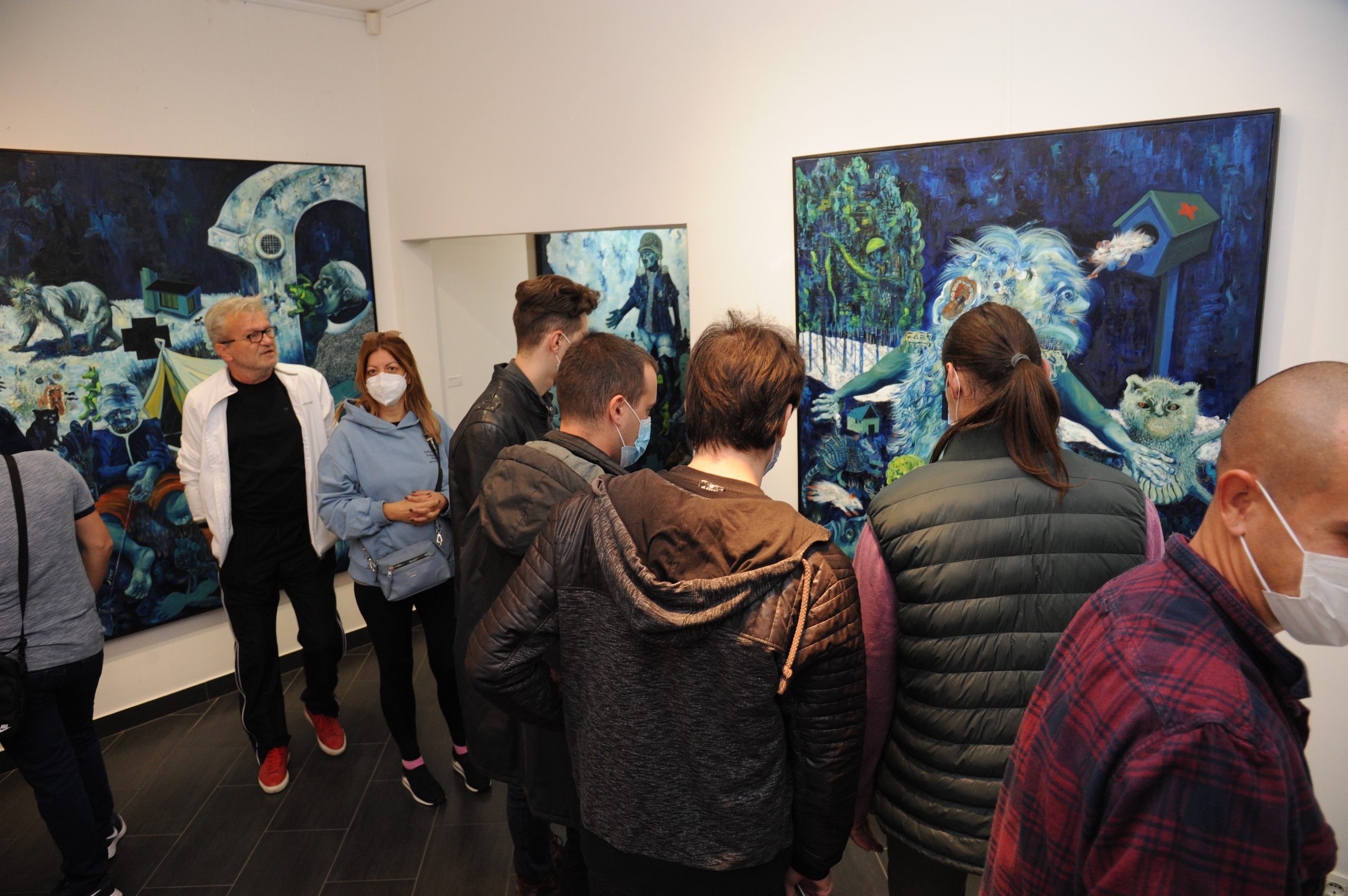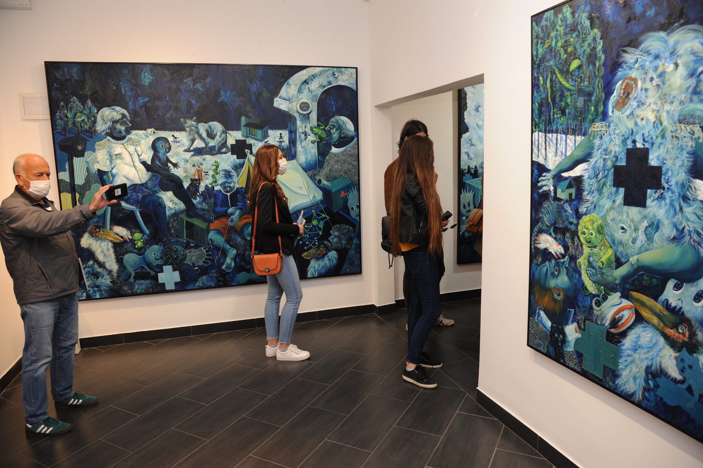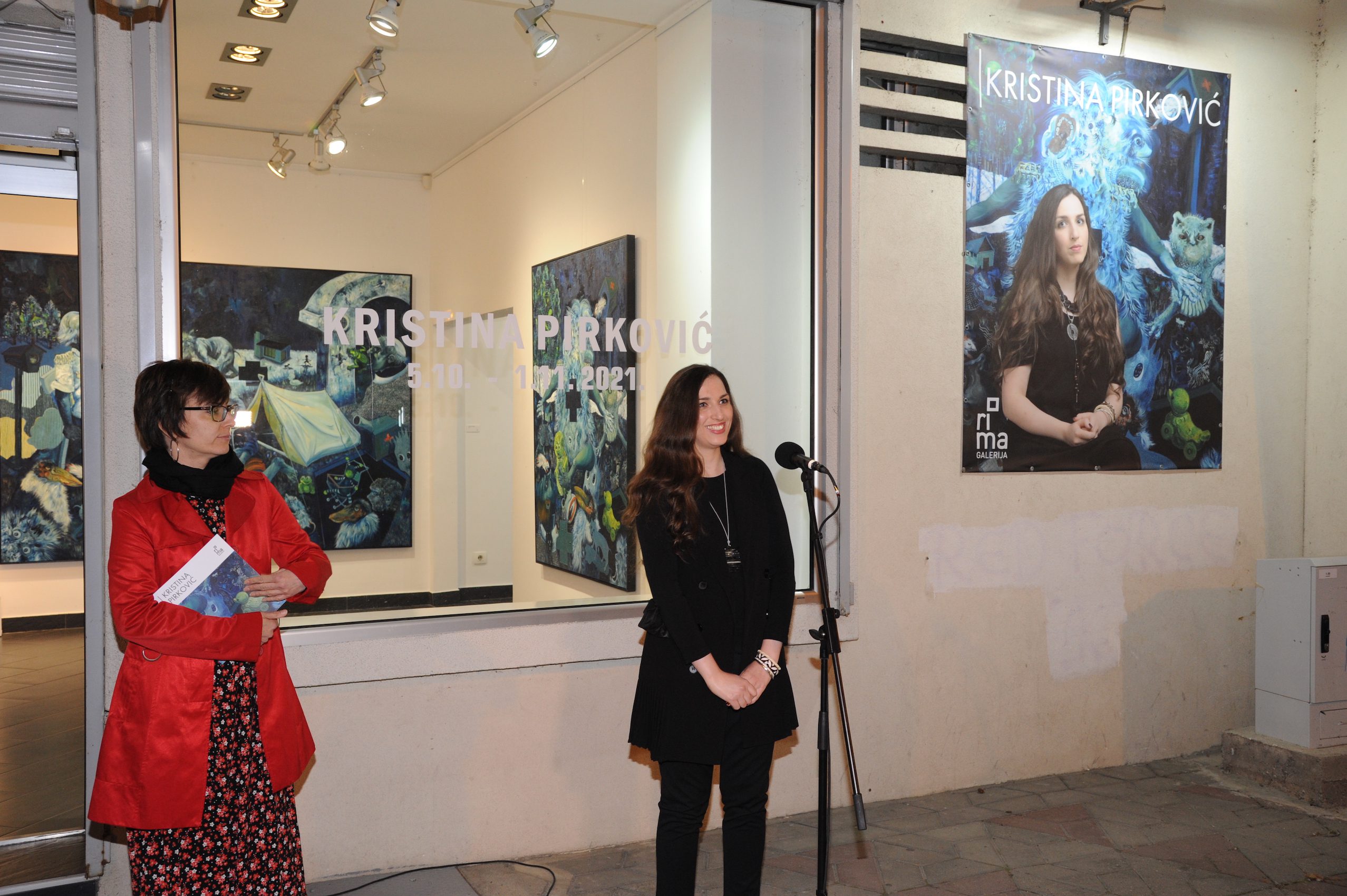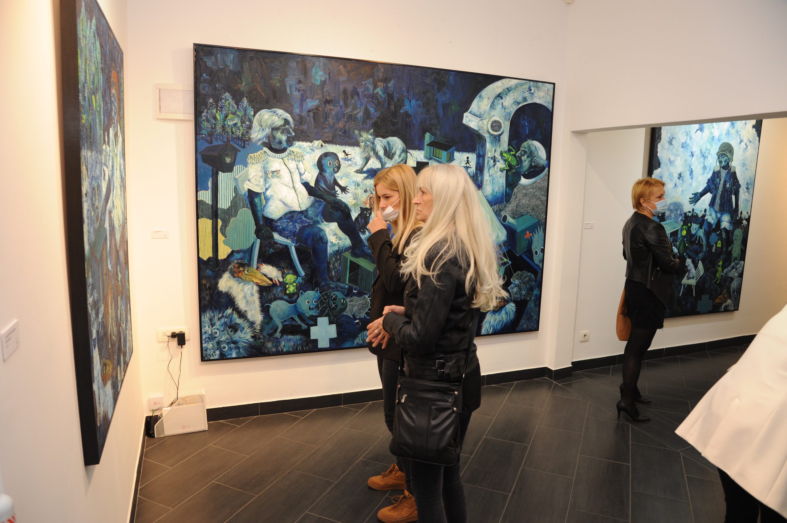 The visual procedure of Kristina Pirković is close to the technique of palimpsest. It keeps the traces of a rich visual art legacy so that through them, on their already faded background, new creations can grow. Therefore, one can recognize reminiscences of the expressionistic palette of Chaim Soutine and Chagall’s inclination to flirt with spatial disproportions, real and phantasmal; allusions to the hallucinatory “blue phase” of Igor Vasiljev are also noticeable, but as well as Šejka’s chaos of the Junk Yard and the waste of the Storage devoid of a centre, or the teratology which is the real image of Dado Đurić’s universe… Those are all traces, shadows of unforgotten ancestors that make up the authentic world of our artist.