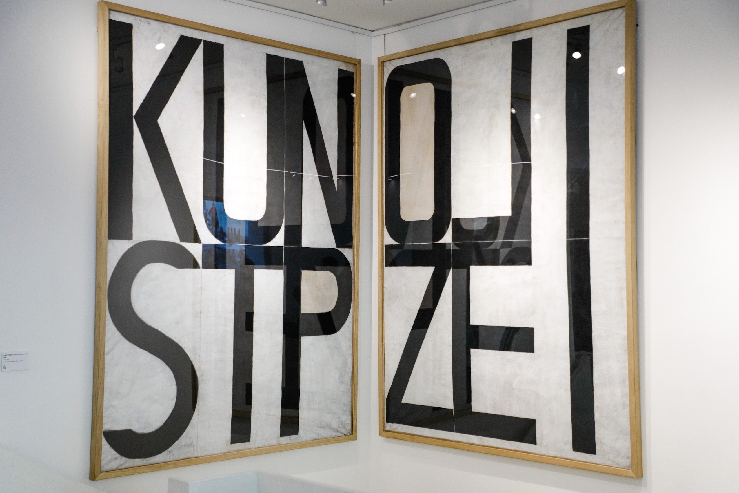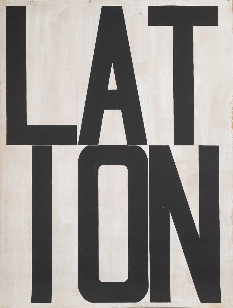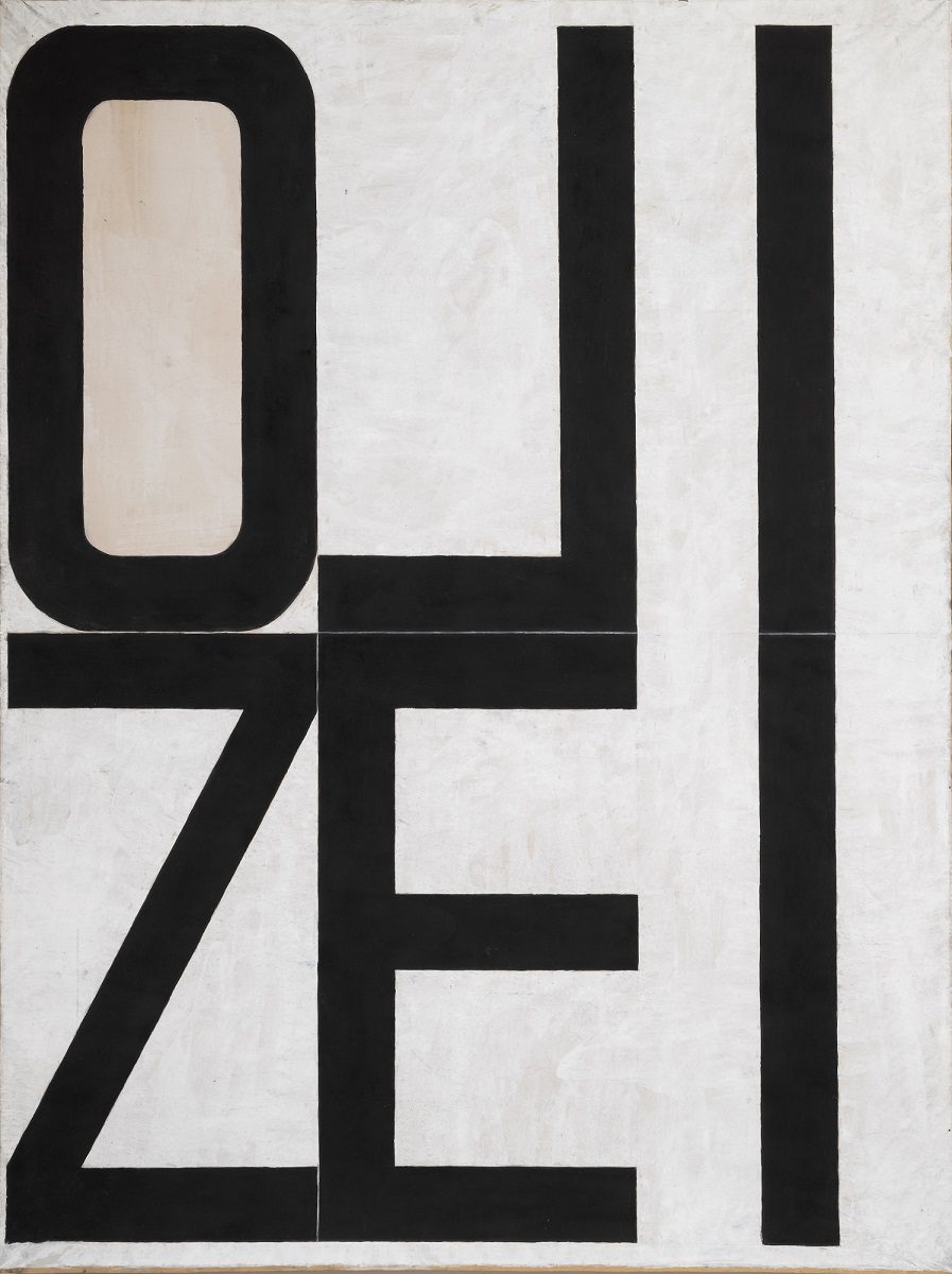 Between March and June 1999 Milan Blanuša produced a series of artworks that would soon become a unique episode in his overall opus. The word appears as the only motif of those drawings. Painted in black on big format paper sheets (200×150 cm) the concrete word strikes the observer first as a monumental and geometrically structured composition. Divided in two rows and oriented towards the visual compositional logic instead of grammatical, there are words in German and English: TRAUM (dream), HIMMEL (heaven), NEBEL (fog), BLITZ (lightning), KRAFT (strength, power, force), NORVAY, INSTALLATION, IDEE (idea), STREIK (strike), KUNST POLIZEI (art police). Until the exhibition in Gallery RIMA, more than two decades after they had been created, the artist had not shown these drawings as an integral series and for that reason this is a retrospective opportunity to re-examine the position these works hold in Blanuša’s opus. The main characteristic of these drawings – a decade long continuity in Blanuša’s painting – is the use of textual inscription in the picture, in German and the English languages. However, what becomes evident at the first sight is the fact that the text has become the only motif of the picture, the only carrier of content and form. Having in mind just that one element as the spot of transformation in Blanuša’s work, this series stands for several important issues: What is the role of text in Blanuša’s pictures, and has it changed in these works? What is the motivation of this creative episode, and has it had any influence on artist’s later creations?