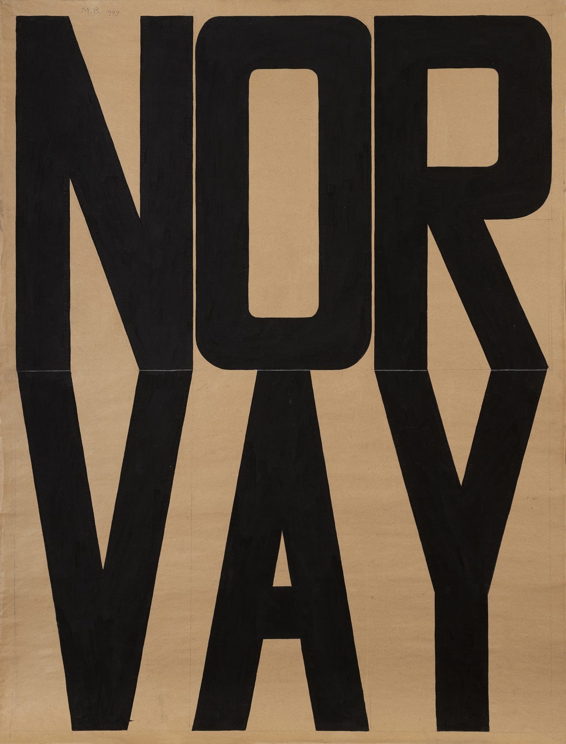 In the three months of NATO bombardment of SR Yugoslavia in 1999, the artist produced big format drawings where the text is first formally (in its dimensions and the place in the picture) equalised with the figure (Urban I, II, III, Urban-Rubber Lovers) in order to suppress it and become dominant (Up, Down, North, South) and finally push it out of the drawing where it is the only motif. Blanuša’s choice of concrete words came, as he himself says, from “the overall situation happening in these regions” – from economic and political crises, over the tragic civil war, sanctions, general devastation of values, unsuccessful attempts of resistance and struggle, to the bombs that killed ordinary people and demolished the country. Therefore, one should not have any suspicions that in these drawings, produced in the period of three months of the most acute existential tensions, Blanuša adjourned the central place and monumental form to the words of specific meaning. It is almost impossible today, and perhaps unnecessary, to understand those meanings which forced the artist to choose exceptionally abstract and complex concepts such as: Dream, Idea, Paradise, Fog, Installation, Lightning. That search is perhaps the simplest in the case of the only geographically defined concept – Norway, of which the artist speaks with enthusiasm: “I have dreamt of the north and Scandinavian lands. When I was young, I desired to go to Norway. I have always been fascinated by Scandinavian philosophy (let’s say Kierkegaard) and literature, to mention only the Nobel Prize winner Hari Martinson. That northern spirit and the metaphysics of the north have always stirred in me some idea about freedom. I believe it is a country with a freedom-loving spirit and democracy”. This quotation and the two concepts from the series of drawings (Idea and Dream) clearly indicate that for the artist Norway is not a place on the map but a compilation of ideas and ideals to which he himself is striving and which support his own relationship to life and art. Within the same framework one should look for the sources of those drawings, chosen and gathered in an existentially sensitive and tense moment of personal and collective existence.