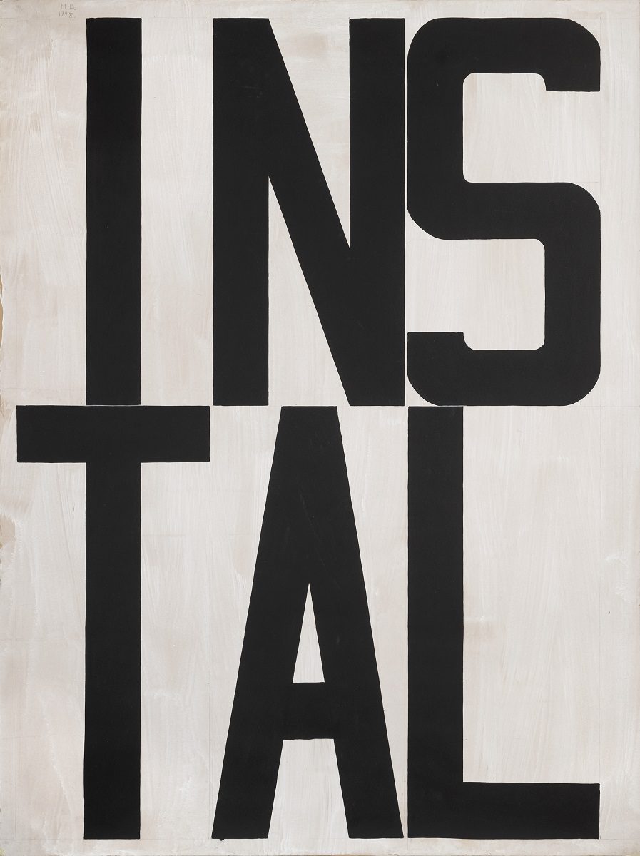 Between March and June 1999 Milan Blanuša produced a series of artworks that would soon become a unique episode in his overall opus. The word appears as the only motif of those drawings. Painted in black on big format paper sheets (200×150 cm) the concrete word strikes the observer first as a monumental and geometrically structured composition. Divided in two rows and oriented towards the visual compositional logic instead of grammatical, there are words in German and English: TRAUM (dream), HIMMEL (heaven), NEBEL (fog), BLITZ (lightning), KRAFT (strength, power, force), NORVAY, INSTALLATION, IDEE (idea), STREIK (strike), KUNST POLIZEI (art police). Until the exhibition in Gallery RIMA, more than two decades after they had been created, the artist had not shown these drawings as an integral series and for that reason this is a retrospective opportunity to re-examine the position these works hold in Blanuša’s opus. The main characteristic of these drawings – a decade long continuity in Blanuša’s painting – is the use of textual inscription in the picture, in German and the English languages. However, what becomes evident at the first sight is the fact that the text has become the only motif of the picture, the only carrier of content and form. Having in mind just that one element as the spot of transformation in Blanuša’s work, this series stands for several important issues: What is the role of text in Blanuša’s pictures, and has it changed in these works? What is the motivation of this creative episode, and has it had any influence on artist’s later creations?