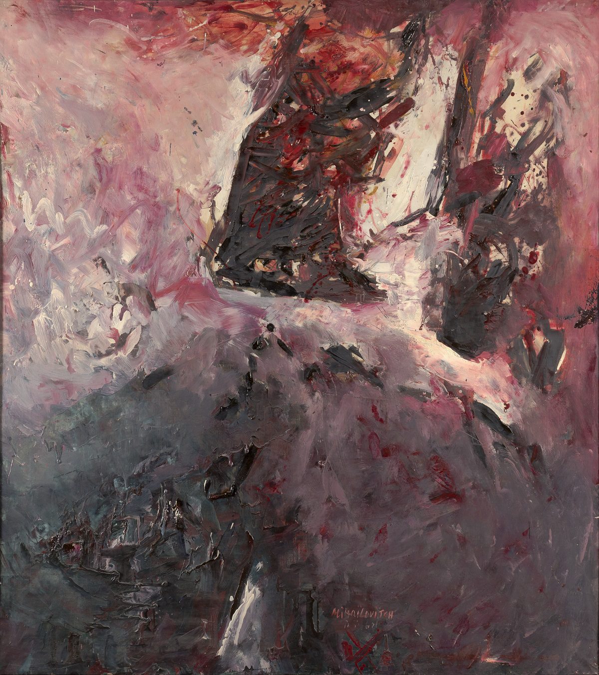The concept of “new figurativeness” (une figuration nouvelle), mentioned by Boudaille with regard to Mihailović, did not assume representations of human figures, and should never be linked or identified with “new figuration” (la nouvelle figuration) as one of the central artistic currents in the period “after art informel”. Therefore, the concept of “new figurativeness” in case of Mihailović’s art from the 1960s really refers to renewed referential potentials of painting evolved from the preceding experience of lyric abstraction, meaning the painting which – in line with an accelerated free and almost gestural procedure–introduces possible associations to transposed motifs of landscape. This inspired the critic from Paris Michel Ragon (who wrote about Mihailović) to introduce the term “abstract landscape painting” (Paysagisme abstrait) into the nomenclature of French artistic tendencies in the first and second post-war decades, as it appeared in his text Lyric Abstraction – From Explosion to Inflation.