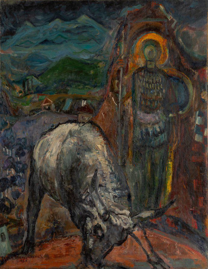 The exhibition commemorating the centenary of Milorad Bata Mihailović’s birth at the Serbian Academy of Sciences and Arts (SASA Gallery) was conceived as a tripartite thematic and problemaric presentation of the Serbian artist’s and and academicians’s oeuvre, and is the third in a series of exhibitions dedicated to him in this space. With the original intention of commemorating the importance of Mihailović’s painting, we approached the organisation of the exhibition with mnemotechnical premeditation. Unlike the preceding, mainly retrospective exhibitions , on this occasion the selected and thematically grouped works were organised based on the principle of creating a different outlook on the ranges and qualities of Mihailović’s painting . The curatorial concept of the exhibition and its spatial arrangement do not cover Mihailović’s entire oeuvre but focus on thematically selected works and creating a balance between representative paintings and those being displayed for the first time. Through a selection of paintings from public and private collections, the exhibition offers a diachronic view with an in medias res starting point.