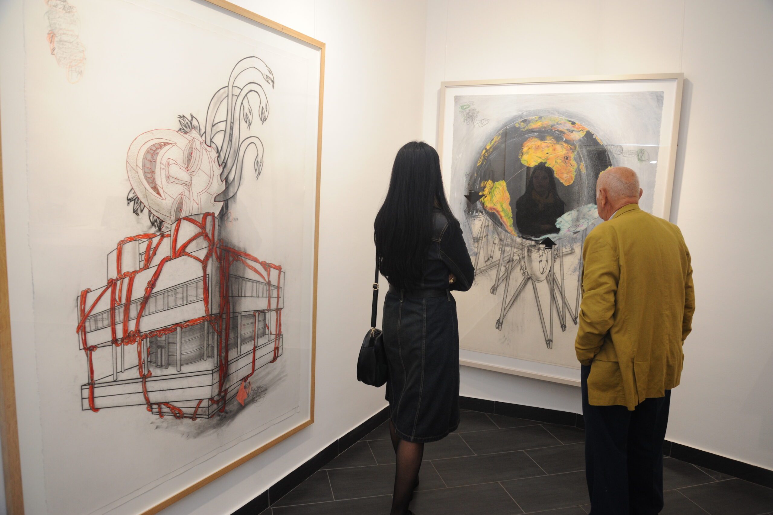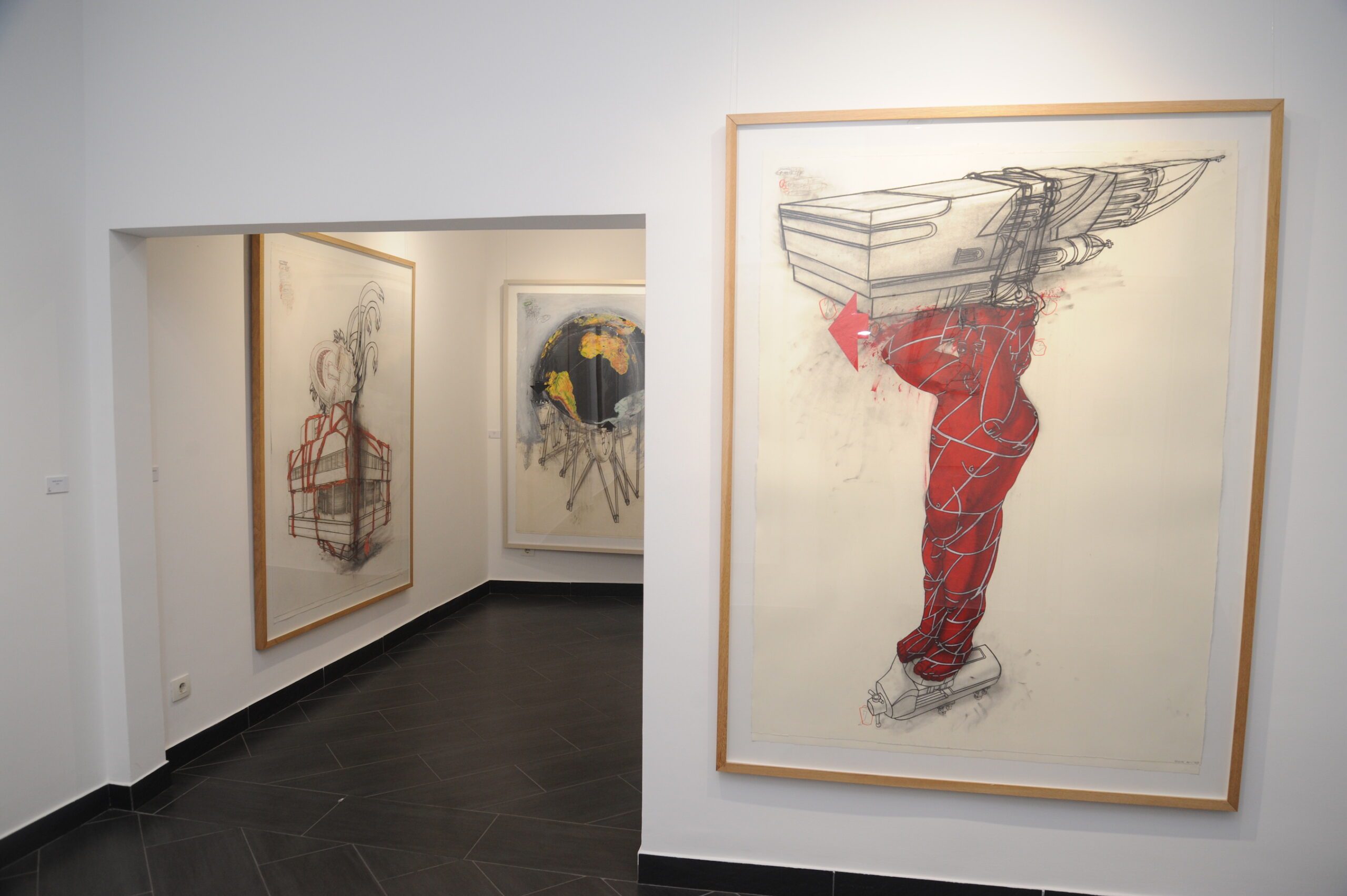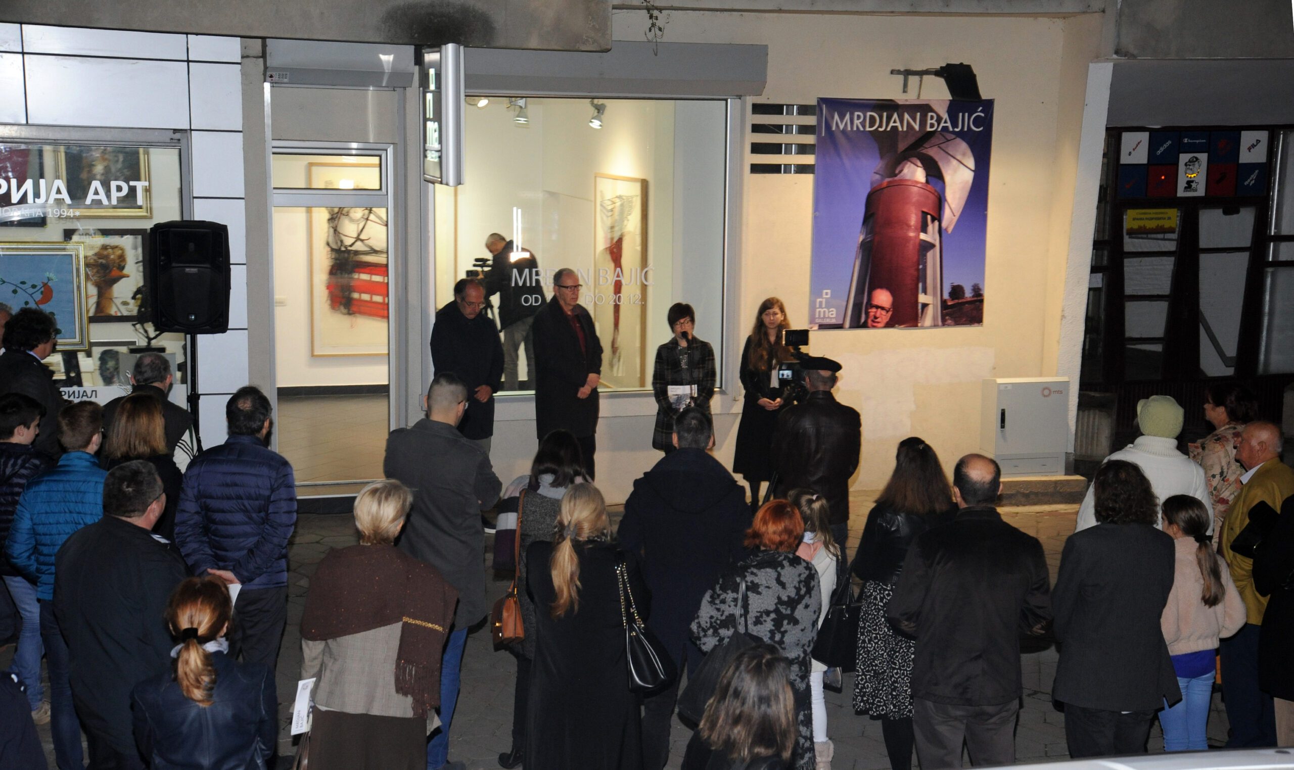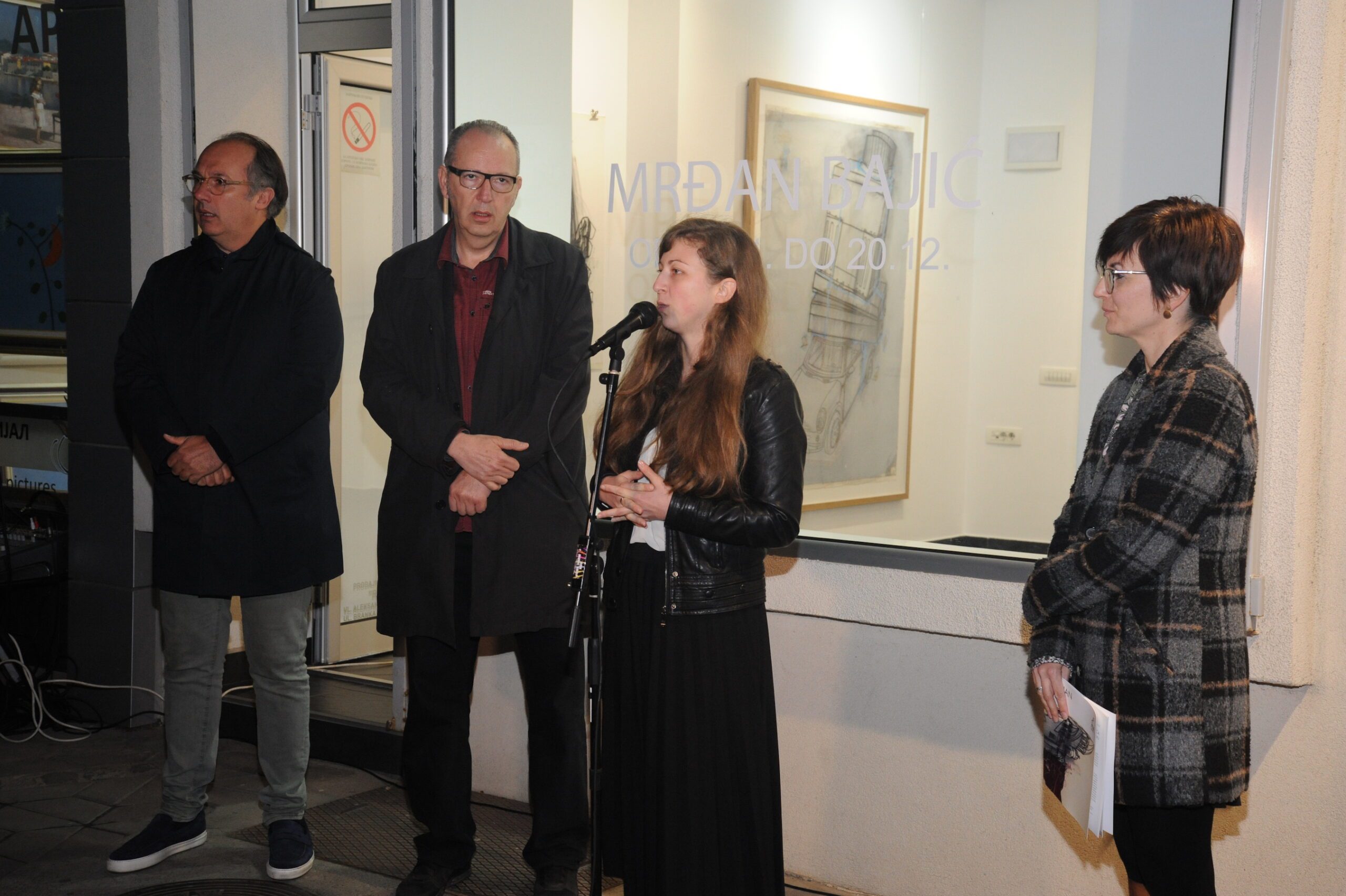 Nedavni opus crteža velikog formata označava unutrašnju promenu samog medija i njegovog mesta u dosadašnjoj Bajićevoj crtačkoj praksi. Od crteža u vidu lične zabeleške, tehničkih skica i crteža pretežno pikturalnih kvaliteta,[9] nelinearnim putem, dolazimo do trenutka kada se umetnik okreće elementarnim crtačkim praksama. Upotreba tehnički konkretne linije i uloga perspektive u istraživanju oblikovnih nedoumica ističu sukob dokumentarnog i fiktivnog na crtežu. Sukob nije međusobno potirajuće funkcije binarnih elemenata već ima ulogu u pokretanju (često beskrajne) bujice pitanja. Idejni i tematski okviri iz kojih umetnik preuzima fragmente kao vizuelne repere u svom radu, obuhvataju lokalni, (bivši i post) jugoslovenski kontekst, koji paralelno operiše sa kontekstom, granicama i simbolima savremenog sveta. Jedan deo crteža velikog formata moguće je razumeti kao problematizaciju odnosa pojedinca i/ili kolektiva prema nasleđu. Kada mislimo o nasleđu, mi nužno mislimo na sećanja, pamćenja, identitete, na društvene, geo-političke i ideološke stvaralačke procese usmerene ka prošlosti, koja se pak retko otima rukama sadašnjosti. Nasleđe nije zaokružen i zanavek definisan entitet,[10] već proces oživljavanja i korišćenja materijalnih i nematerijalnih svedoka prošlosti. Izložbu crteža Mrđana Bajića u Galeriji Rima možemo interpretirati kao gradaciju mikro i makro društvenih situacija u kojima je moguće otkriti sukobe, agresiju, fragmentarnost, nestabilnost i semantičku složenost ličnog, nacionalnog, umetničkog i kultunog nasleđa. Podsetimo se, nema dokumeta kulture koji istovremeno ne bi bio dokument varvarstva.[11]