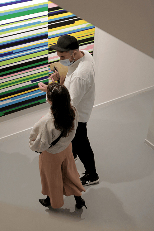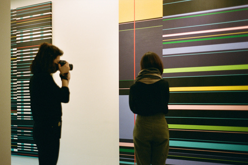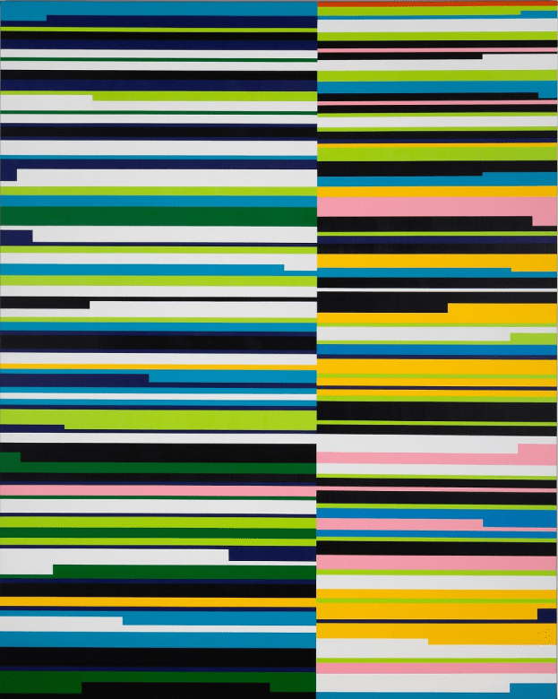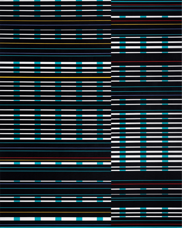 The above imposes an assumption that Nikolić’s picture is radically non-referential towards the world outside its own framework, but this is refuted by the fact that its departure point lies in film, more correctly, in artist’s experience of film watching. In his doctoral dissertation, Nikolić states: “It has been my desire to produce the impression of film watching inside geometric abstraction, but without the sound, the narrative, fiction or any other aspect of a film” Nikolić carries out this initial idea through the procedure Stevan Vuković recognised as “remediation of film rhythms” consisting of a repeated watching of the same film in order to “extract certain rhythm from it”. However, Nikolić does not use any objective methodology, and never tries to literally follow the director’s idea by his own “punctuation” of sequences, stills and cuts. He chooses films that have made the most powerful impression on him and returns to them focused on those scenes and sequences that have left the deepest trace in his impression. Therefore, the procedure of “extracting rhythms”, seemingly analytical, is intuitively carried out, since each new watching of the same scene makes an advance relationship to the preceding, more or less different experience, deposited within the unstable spaces of memory. As Vuković notices, the rhythmic structure of film content is subjectified on its way to the painting and Nikolić’s “painterly works appear as very subjective and autonomous, because they stem from a personal experience.”