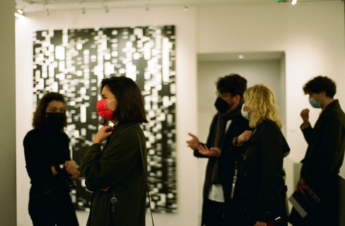 A serious film fan from his childhood, Nemanja Nikolić has almost entirely based his artistic practice on his own cinematographic experience, thus continuing the line of „avant-garde practices of Yugoslav artists focused on experimental research in the area of moving pictures“ In studying the realms of film networking with traditional artistic discourses, such as painting in which he himself has had formal education, Nikolić does not steer his creative work into a straightforward course, but branches it into two different directions that move parallelly. On the one hand, he creates complex multimedia works, including his major artistic project The Plot (2017-2021) where the incorporated cinematographic elements equal the drawing, the text, or the sound. In other part of his opus, starting with the group of works Vertigo (2012-2013) and the cycle Samples of the Liquid Book (2012-2017), over the series Vanishing Fiction (2017-2018) to the latest cycle Rhythm Variations (2019-2021), the artist works exclusively within the discourse of the picture, in traditional painterly medium and the morphological field of geometric abstraction. Here, film, or the experience of film watching, has an ambivalent position, simultaneously crucial in the creative process and marginal in its final section.