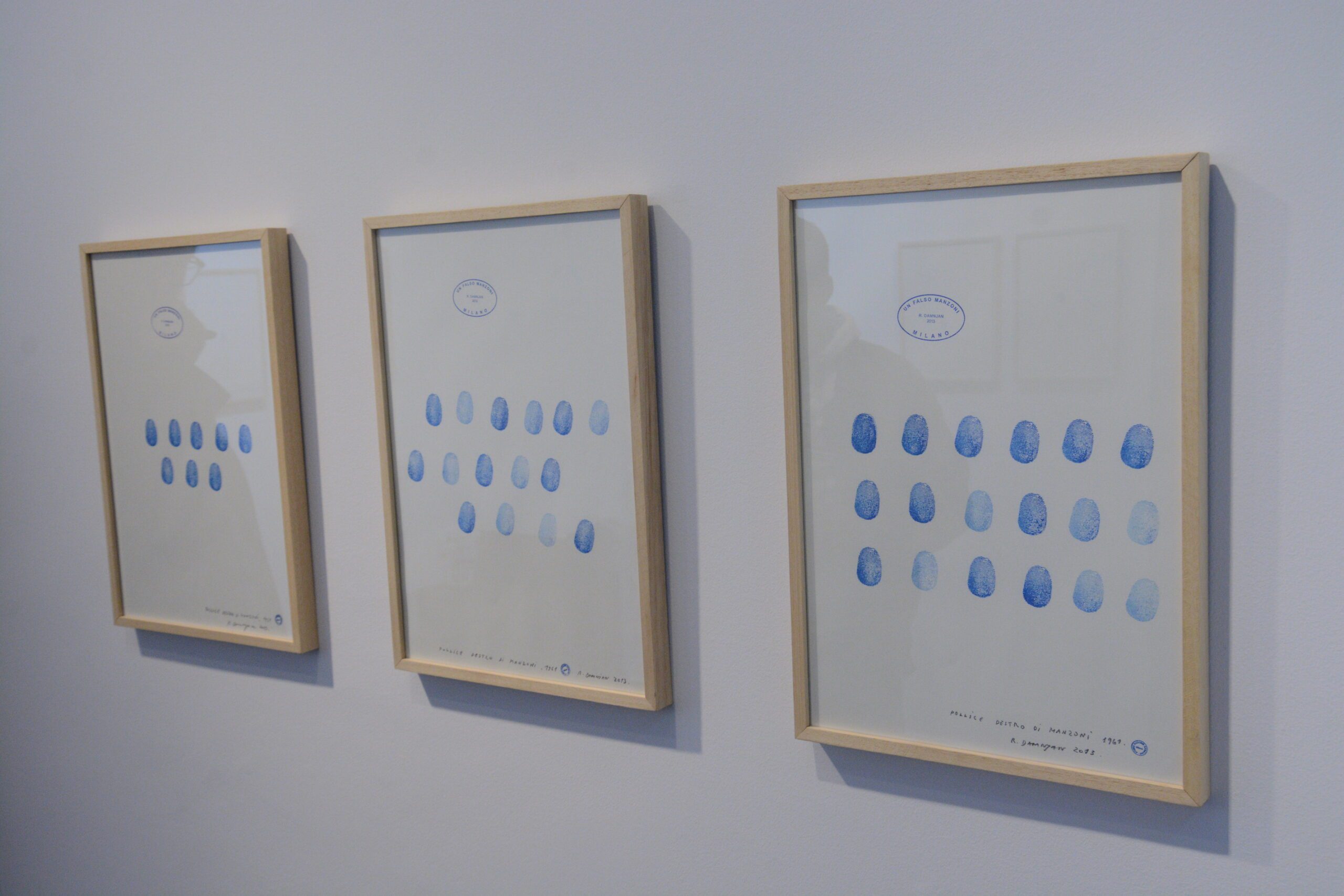 Damnjan made the works attested with his authorial stamp saying Un falso Manzoni after the photographs printed in the catalogue of Manzoni’s retrospective in Milan in 2014, but he had known of this Italian artist much earlier, among other things owing to his contacts with members of the group Gorgona, who had invited Damnjan to Zagreb in 1962 where he organised a solo show; the accompanying text was written by Matko Meštrović and published in a modest catalogue-invitation card. Soon afterwards, Manzoni prepared for his, unfortunately unrealised, author-edition of anti-magazine Gorgona three proposals bearing the same title Tavole di accertamento: under (1) with the letters of alphabet, under (2) with imprints of the thumb and under (3) with the line. Therefore, there is a number of data which, more than fifty years later, remind us of direct or indirect relations in the triangle Manzoni-Gorgona-Damnjan, inspired by the events in Zagreb in the 1960s. Damnjan’s work Un falso Manzoni perhaps owes its initial idea to those far away but still remembered circumstances.