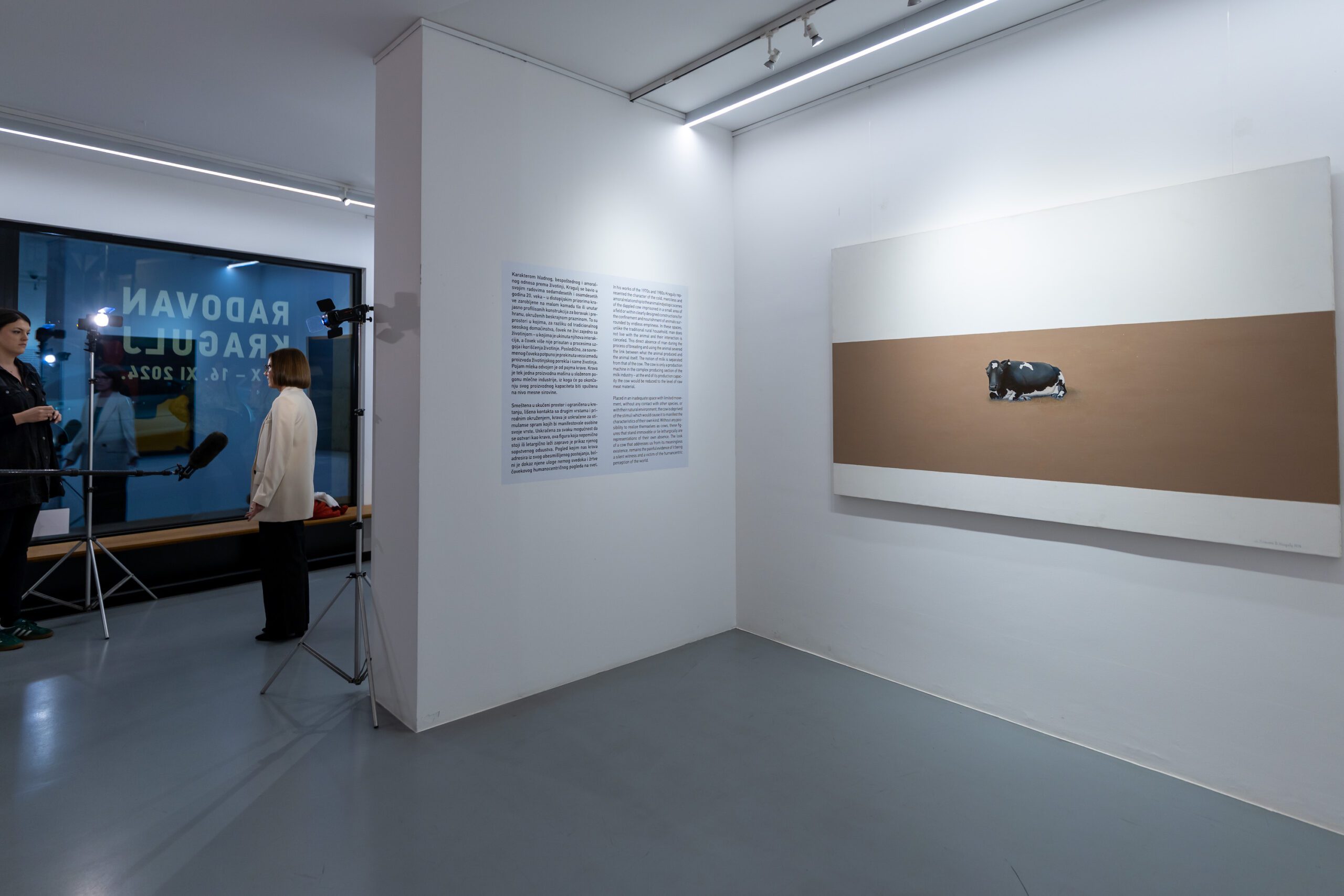 This pluralistic and multi-dimensional approach to the topic of man’s relation to the animal achieves its climax in Kraguly’s complex multimedia exhibition projects, which occupy not only galleries but also public spaces, then include performances and interventions in space, and involve audiences in various ways. Finally, by treating his painting and multimedia works with the subject of the cow as “work in progress” – work that constantly multiplies and becomes more complex, with no final conclusions or sharp artistic cuts, the artist adopted the experience of the borderline as the life-giving instrument of existence – of art, the cow and man.
