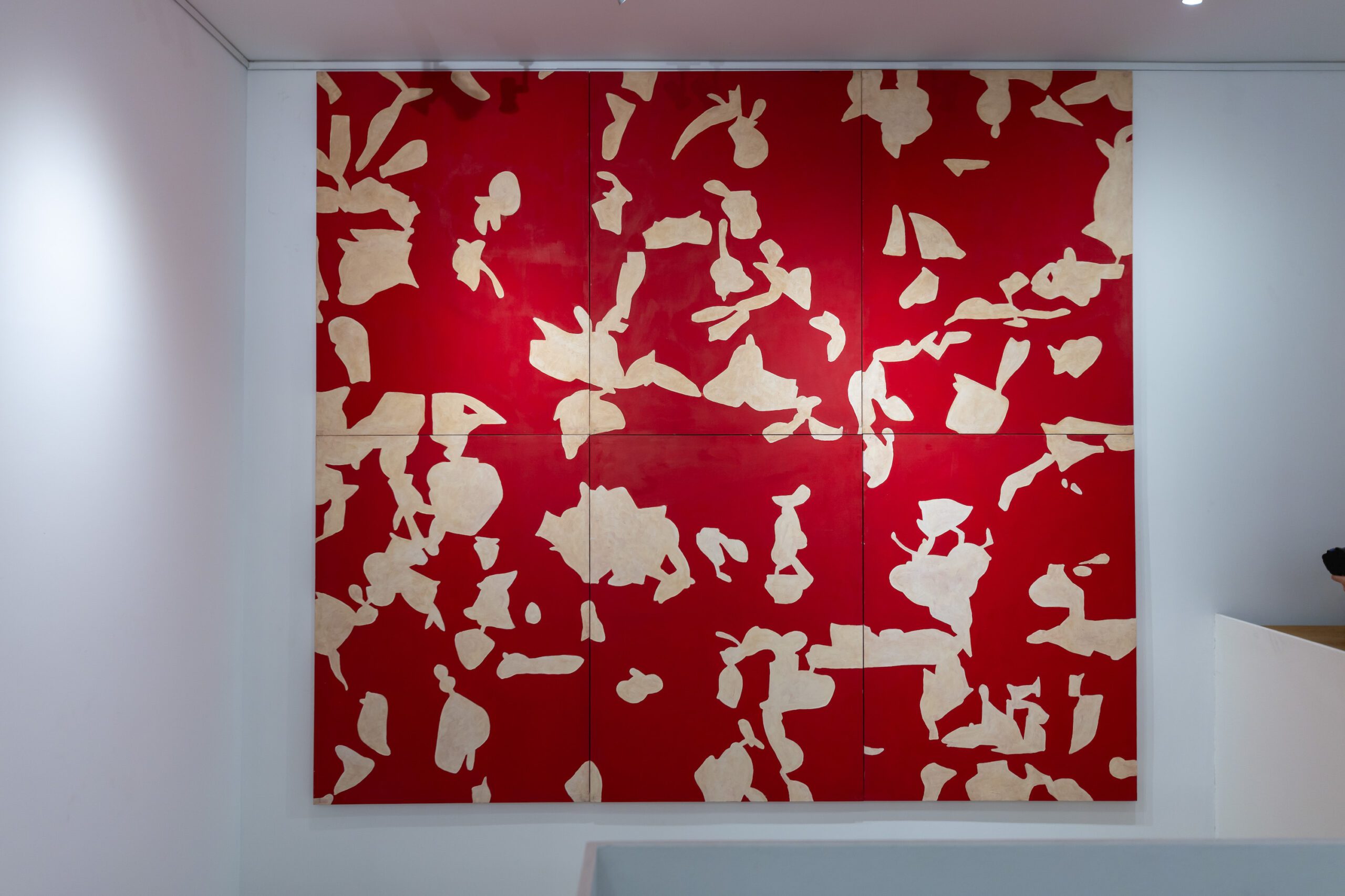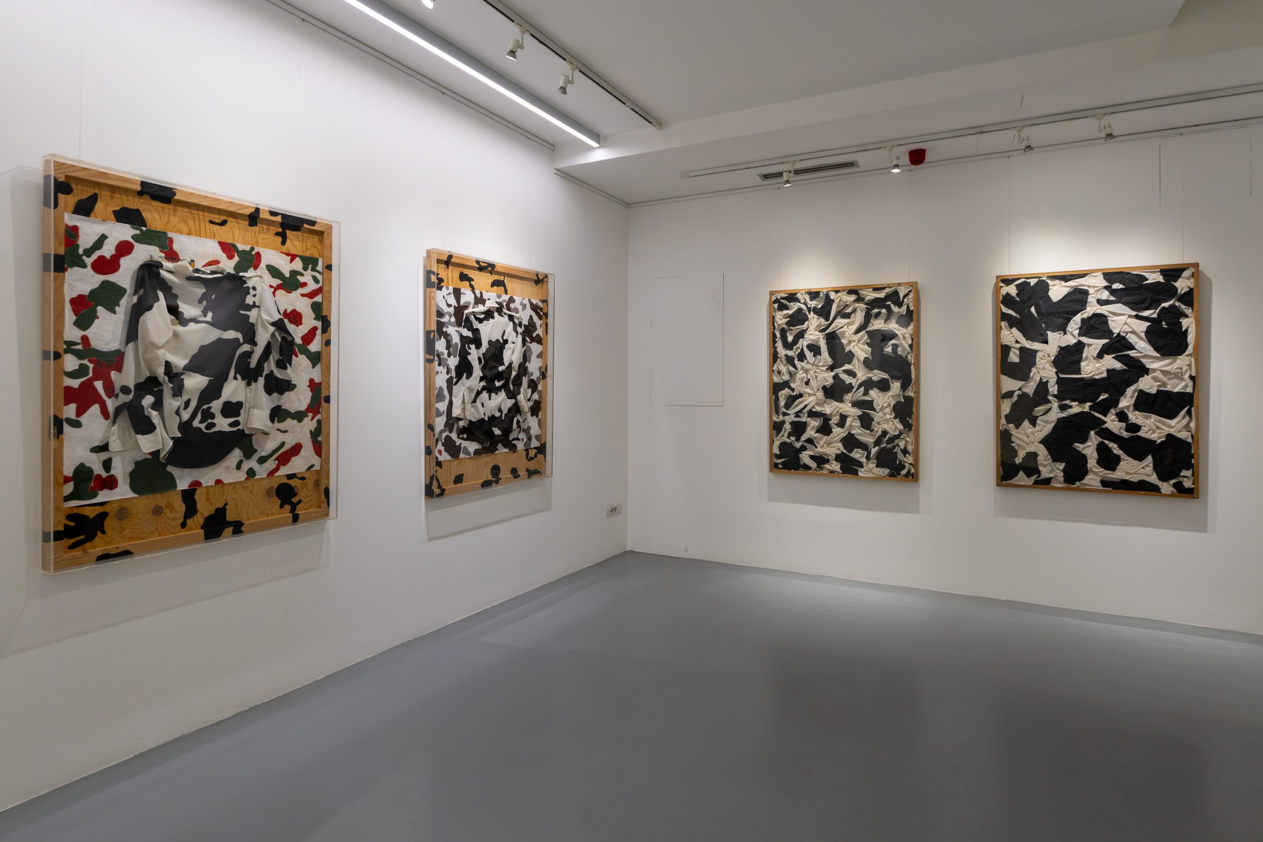 The space whose imaginary mapping is reconstructed by Kraguly in the cowhide spots is not a tangible territorial limens, but an ontological borderline belt between man and the animal, reflected in physical relations as well. The irregular forms Kraguly used to cancel the former geometric structure first refer to the two-centuries-old idea about the precisely drawn straight division between man and what constitutes the animal. In the changeable disposition of abstract spots, in their overlapping, stratification and multiplication, in their discontinuities and overspilling, in their permanent growth and spreading across the picture field and outside it, it is possible to recognise Derrida’s deconstructivist understanding of the borderline between the world of people and the world of animals. Derrida introduced the term limitrophy for his thesis on the specific experience of the borderline. The term is of French, or Latin, origin and derives from the adjective limitrophe/limitrophis meaning bordering, neighbouring. It is used, in particular, in relation to the provisions and upkeep of border areas. It is interesting that the meaning of the word tropos/trophē/trephō, particularly important for the understanding of the entire notion, Derrida described in a natural analogy “to transform by thinking, for example in curdling milk.” He insists on the heterogeneous multitude of the large but collectively observed animal realm, on the awareness of innumerable and diverse non-human beings with whom man shares different degrees of closeness and differences. Hence one homogeneous continuality does not exist, but rather a borderline composed of a multitude of “internally divided lines“ that make it fluid, incessantly growing and impossible to objectivise. In Kraguly’s works produced since the second half of the 1980s and the 1990s, in which he developed abstract fields of irregular spots, we recognise a quality very similar to Derrida’s experience of the borderline – the continual provision of new forms, their unlimited spreading, their uncatchable multiplication, their mutual “thickening” and entangling, all realised through the relationship of the spots, each of which is particular and unrepeatable.