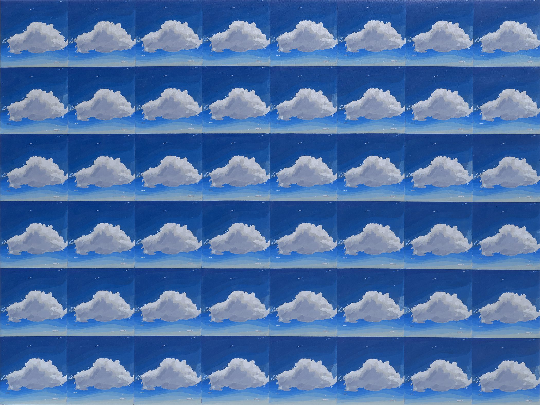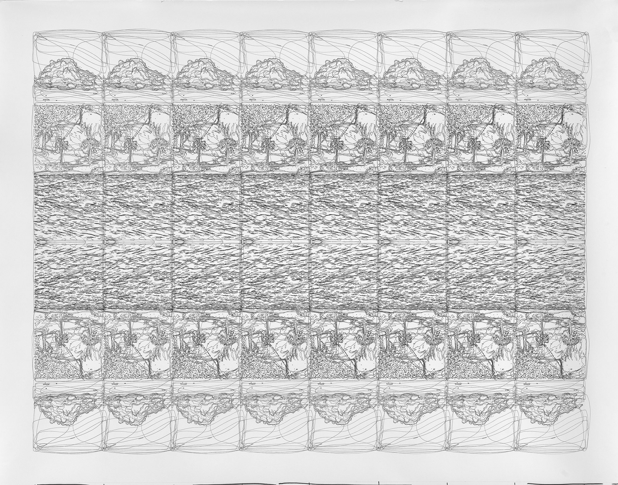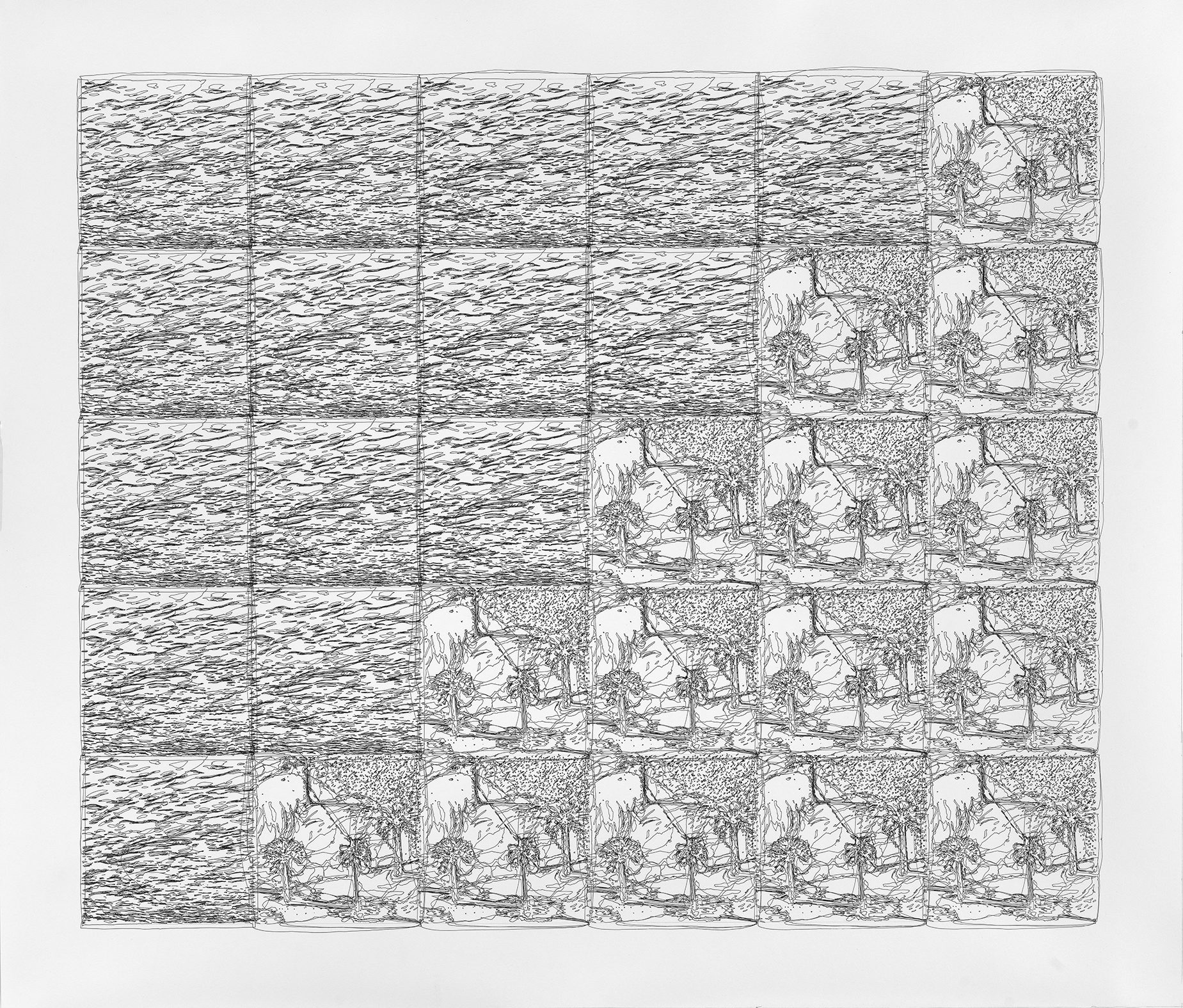 Digitalna fotografija u svojstvu siromašne slike[12]funkcioniše kao gradivni modul slike i crteža koji repeticijom dovodi do patern strukture površine platna ili papira. Svako polje na slici nastaje minucioznim, klasičnim slikanjem koje zahteva dugotrajan i strpljiv odnos prema platnu. Nasuprot tome, crtež koji nastaje nakon slike, jer ne predstavlja skicu ili pripremu za nastajanje slike već je vrednosno ravnopravan medij,[13]nastaje istim metodom ali sa drugačijim tempom i smerom kretanja modula po površini. Raspored i postavka modula na slici je do nedavno imala isključivo linearan princip repeticije. Crteži su imali drugačiju strukturalnu logiku, na njima su moduli postavljeni kao u ogledalu ili je njihovo ponavljanje (sa razlikom) po površini papira nelinearno, rotaciono, cirkularno. Ako imamo u vidu da repeticija nije samo način artikulacije prostora, već sugeriše protok vremena,[14]o kakvom vremenu je reč u zavisnosti od smera repeticije modula? Nemoguće je misliti o vremenu bez prostornih koordinata i obrnuto. Uzmemo li za početnu tačku razrešenja ove premise fotografiju i o njoj ustaljeno razmišljanje kao „zaleđenom trenutku“, svakako sledi da je pored vremena, na fotografiji zabeležen i fragment prostora. Njeno različito cirkulisanje u digitalnom formatu kroz virtuelni prostor, inicirano iz uvek drugačije materijalne realnosti korisnika, pandan je različitom smeru repeticije modula u Šuletićevim radovima. Kao neuhvatljivi deo materijalne realnosti, digitalni isečak iz virtuelnog prostora, transponovanjem na platno i papir postaje deo prostora umetničke realnosti, čime dolazi do sučeljavanja različitih aspekata vremena i prostora. Virtuelni prostor, često ulepšan i doteran do nivoa utopije, utiče i direktno oblikuje kako naše viđenje sveta, tako i svet oko nas. Iako je odnos virtuelnog i materijalnog u disbalansu, oni su suštinski nerazlučivi i međusobno se prepliću. Na slici i crtežu nemoguće je odrediti geografsku lokaciju predloška, to jemesto-nigde, heterotopija bez geografskih koordinata.[15] Radovi Ivana Šuletića akumuliraju pre svega nečiji „zaleđeni trenutak“, zatim protok kao kontinuiranu dislokaciju tog trenutka tj. fotografije u digitalnom formatu i naposletku, vreme koje umetnik unosi u nastajanje svojih radova. U njima je izvršen sukob sa tradicionalnim vremenom, koje razumemo kao jednosmerno, linearno kretanje, te radovi u tom smislu predstavljaju svojevrsne heterohronije.[16]koje materijalizuju sudare i prožimanja vremenskih fragmenata.
