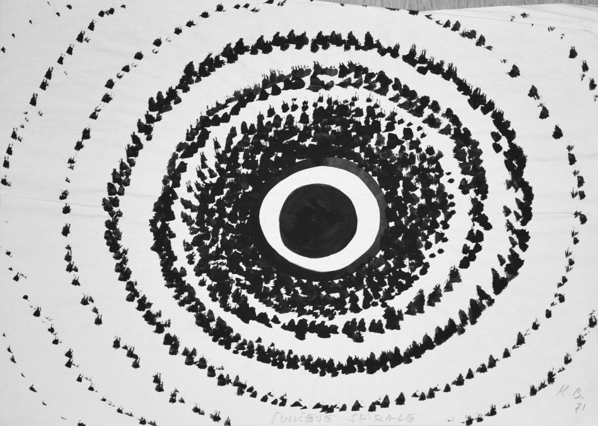 Tih godina percipirani predeli prirode transformišu se u mentalne predele i kroz slikarsku aktivnost postaju simbolični prostori slike. Kompozicija-Pijani brod je ikonična predstava tog perioda, značajna najpre zbog toga što predstavlja omaž slikaru Savi Šumanoviću (17), zatim zbog oživljavanja sećanja na skicirane kupače sa juga Francuske i zbog njihovog od-nosa sa kupačima u Veloj Luci koji su inicijatori tog probuđenog sećanja. U prvom planu slike je brod plave boje čime nas umetnica zbunjuje, jer ne možemo da razaznamo brod od mora. U brodu su kupači čija tela kao da se rastapaju, skoro deformišu pod toplinom sunca. Posebno važan segment u donjem desnom uglu je nenametljiv i neidentifikovan oblik ženskih leđa. Prethodno skiciran, pojavljuje se i na slikama Mali zenit i Zenit (1968). Ta krivudava, “zavodljiva” forma ženskih leđa, iako zabeležena kao reakcija na vizuelnu činjenicu nekog korporealnog ženskog tela, u ovom slučaju postaje simbolična površina telesnog koja skida sa sebe golotinju i oblači se u umetnost (18). Idejnost koju ova slika nosi transformisaće se 1975. godine u Meduzin splav (19), kada će biti aktuelna nešto drugačija potka telesnog.