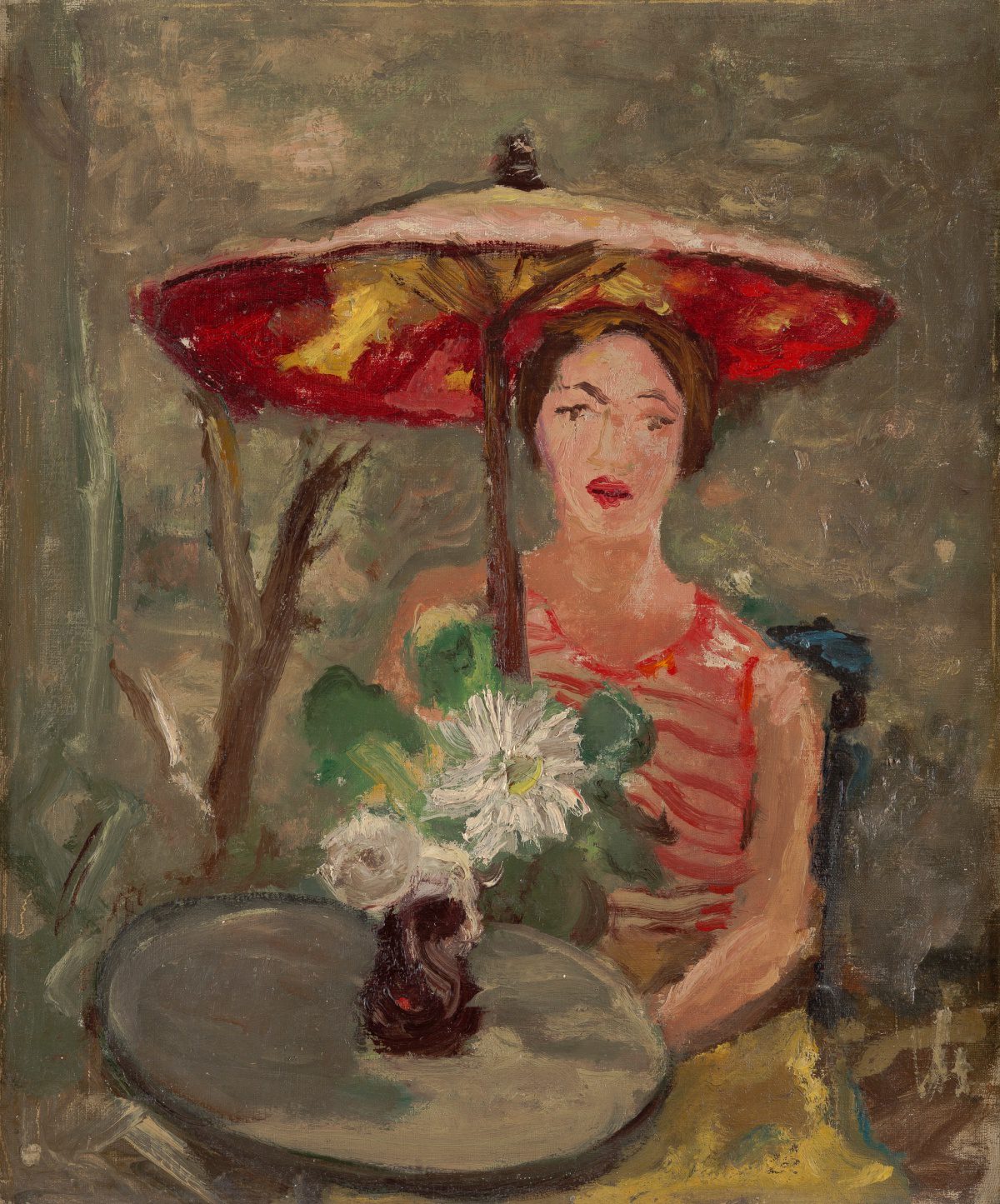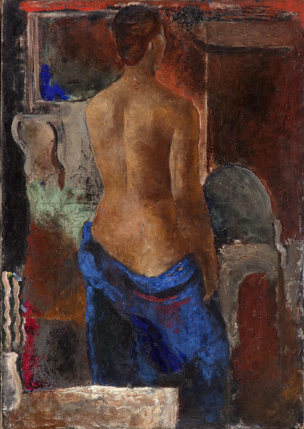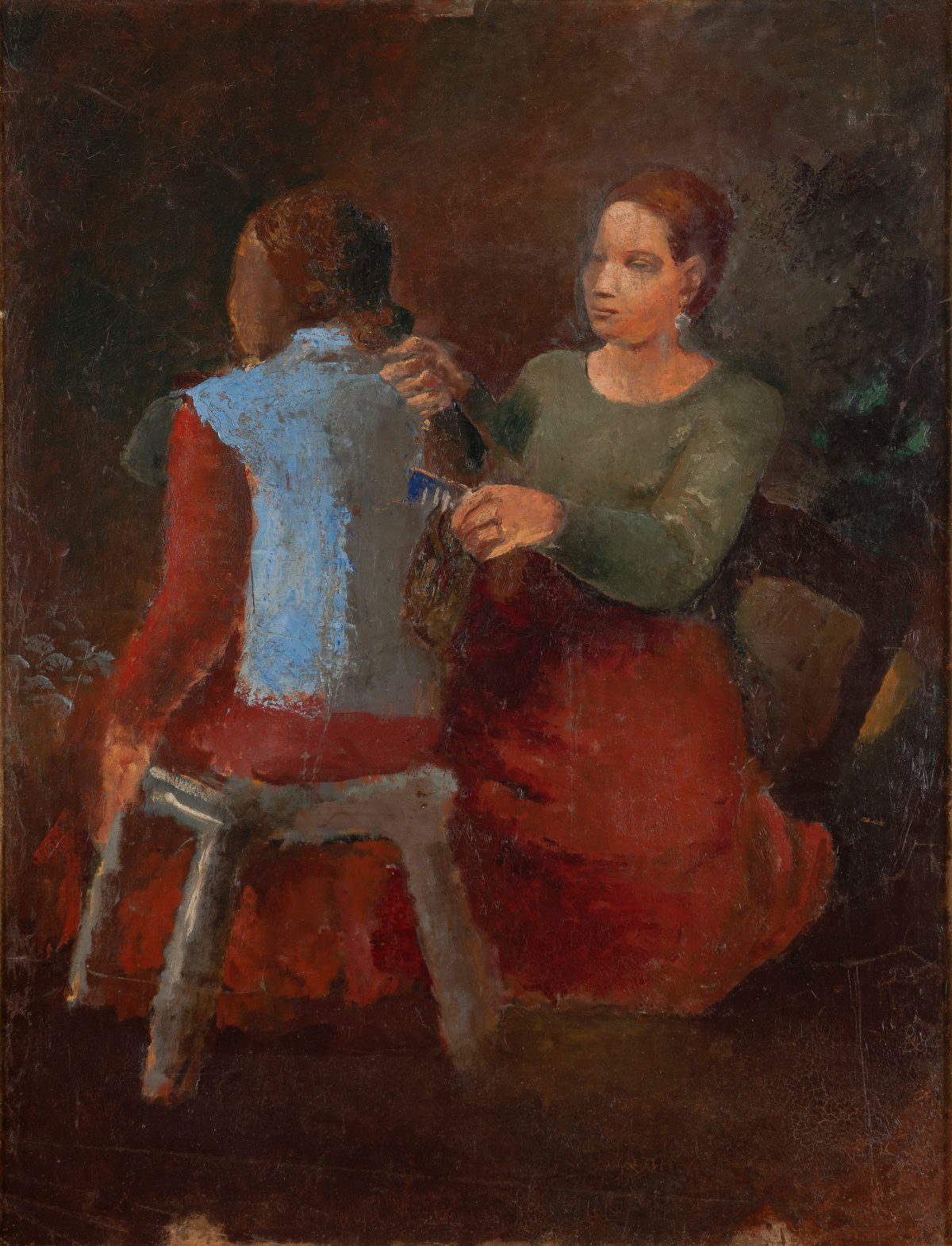 [6] Prema jednom Čelebonovićevom svedočenju Šimicu je sliku kupio na Tiljerijskom salonu 1925. godine, a prema drugom 1926. godine kada je pripremao samostalnu izložbu u Galeriji Kampanj Premijer. Verovatnija je druga verzija, s obzirom da je slika potpisana 1926. godinom, ali nema sumnje da je nastala do 1925. godine i da je izlagana na Tiljerijskom salonu te godine, kako svedoči njen prvobitni naziv Nativité, zapisan na poleđini slike, pod kojim je navedena u katalogu salona. Više u A. Челебоновић, нав. дело, 422; П. Стевчић, „Поновни сусрет са женом у зеленом“, Експрес, 6. 10. 1966.