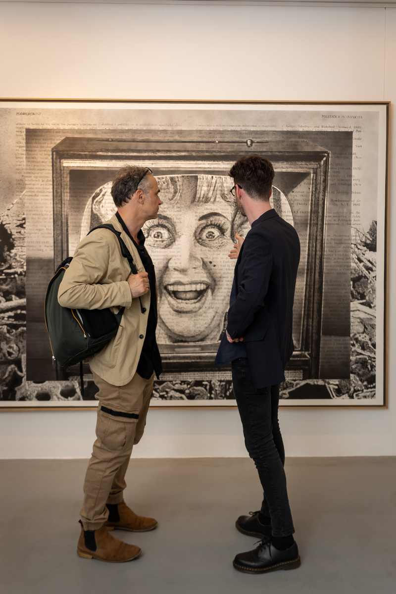 Politika je najstariji dnevni list koji u kontinuitetu izlazi u Srbiji. Kao takav, ima izgrađenu reputaciju kao prepoznatljiv medijski brend i u svesti mnogih njenih građana važi za simbol tradicionalnog nesenzacionlističkog novinarstva. Politika je trenutno jedan od retkih dnevnih listova Srbiji koji nema šarene stranice, napadnu tipografiju i dramatične „vesti” o skorašnjem početku nekog lokalnog ili globalnog rata, koje se nalaze odmah pored najnovijih tračerskih izveštaja sa estrade, crne hronike i prečesto besramnog pisanja o dnevnim temama. Međutim, iako upakovana pristojnije, Politika je list koji ima dugu istoriju korišćenja svog autoriteta za perfidnije provladino propagandno i nacionalističko izveštavanje, čime se pridružuje brojnim drugim „novinama” koje čine slobodu medija i nezavisno izveštavanje u Srbiji daleko od poželjnog i etičnog. Upravo ova vizuelno suzdržana pozadina omogućava autoru da izbegne zamku da crteži deluju prezasićeno, već uspeva da zadrži vizuelnu suptilnost i likovnu poetičnost, ali i da u kontrastu naslovnica u drugom planu i crteža u prvom, postigne dozu ironije, koja je neophodna za čitanje i razumevanje rada.