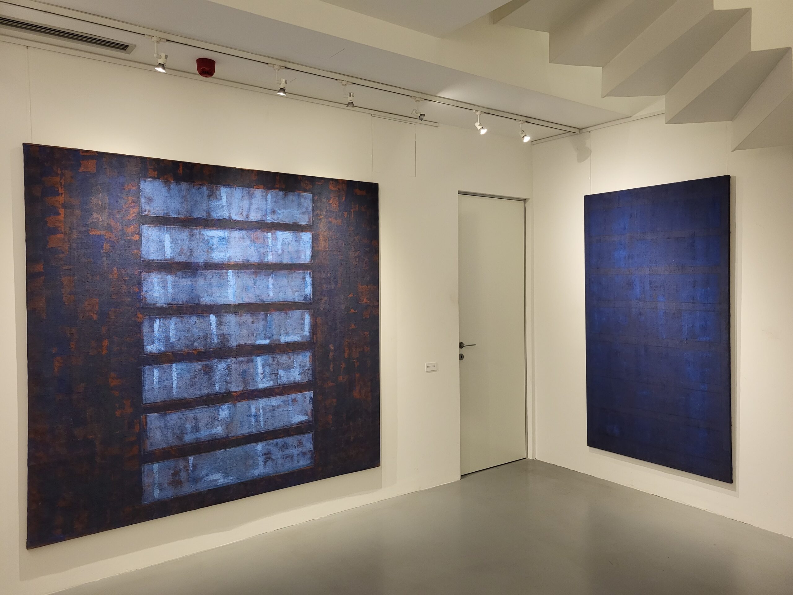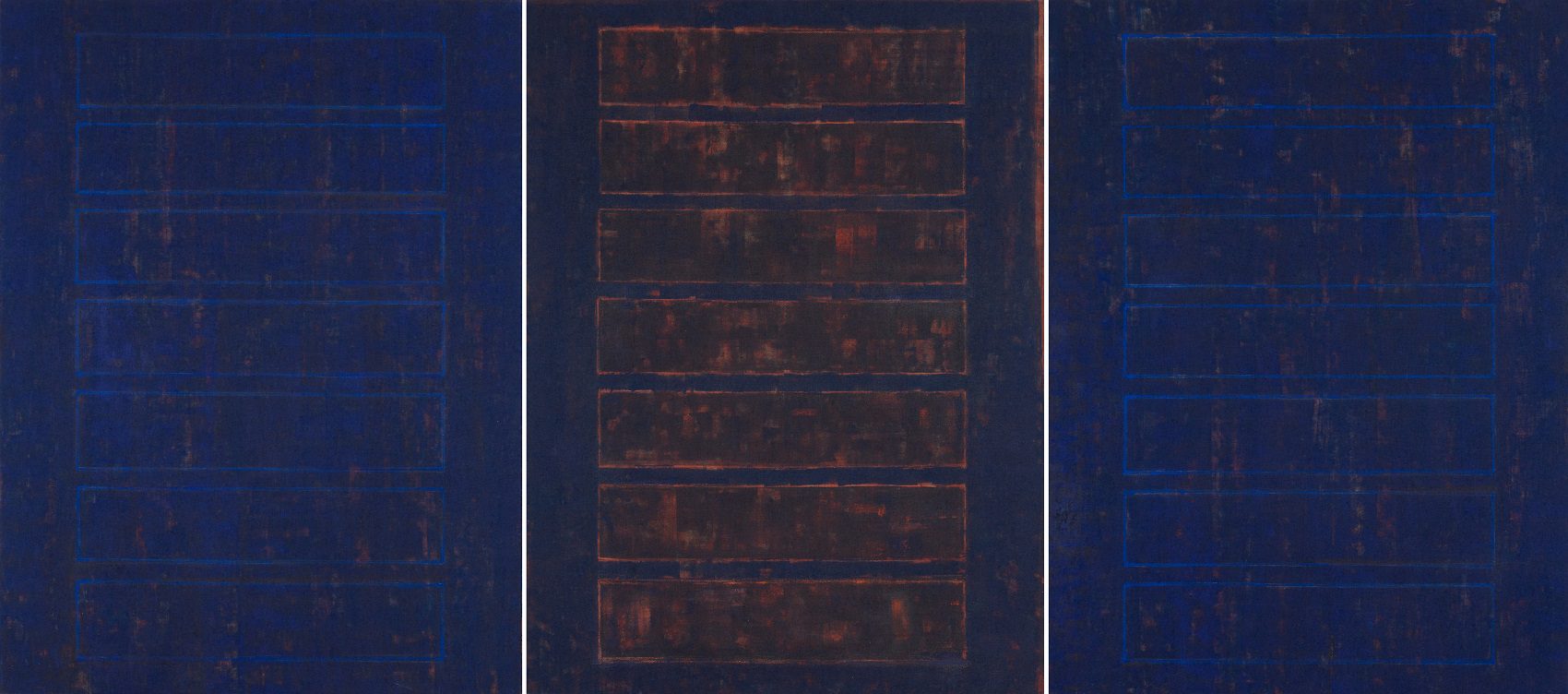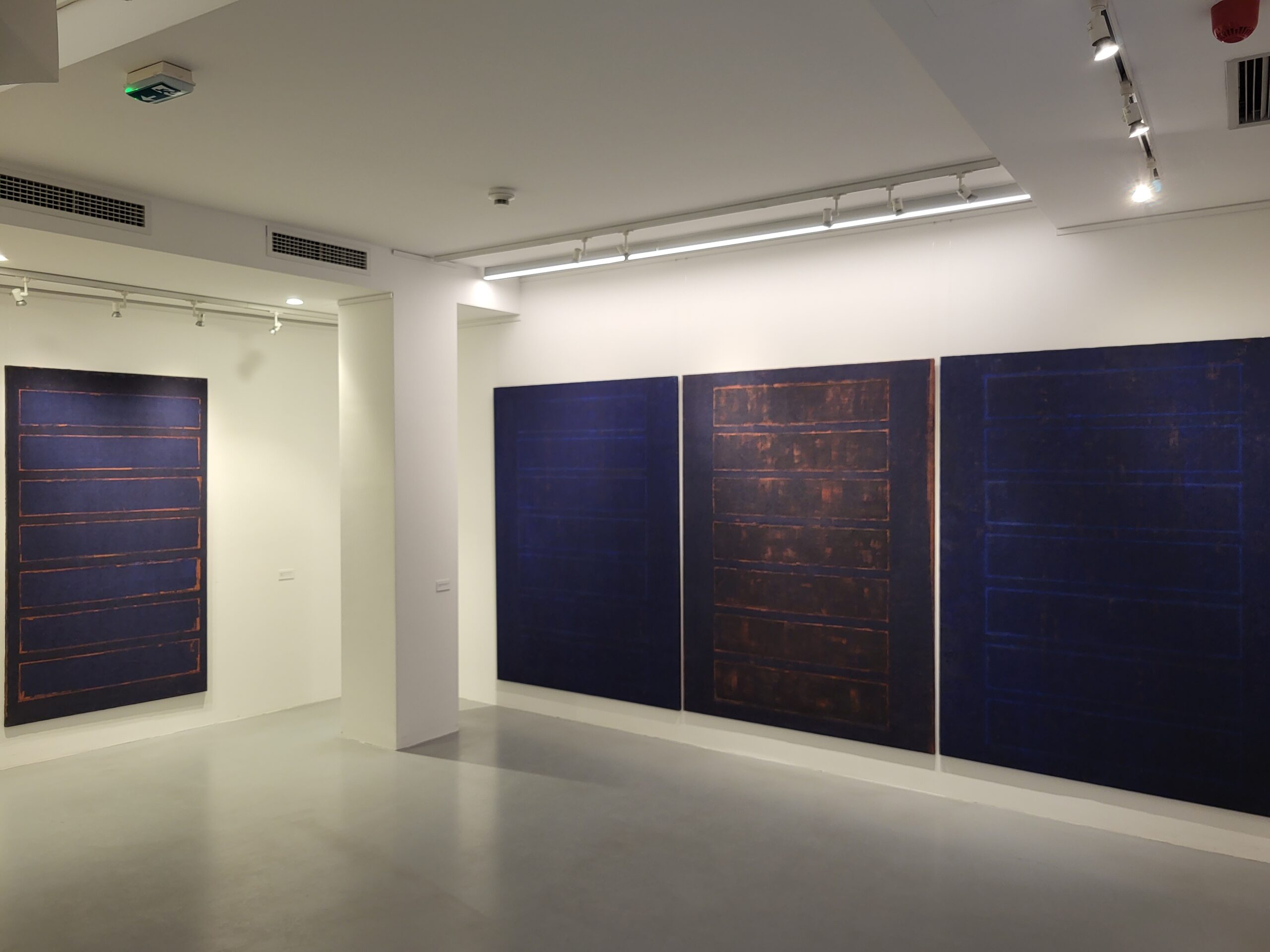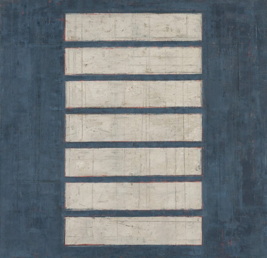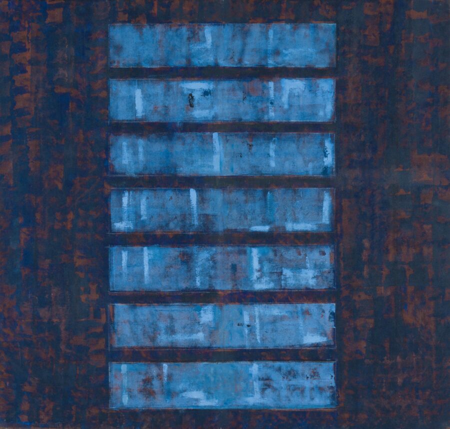 Da li je i sam umetnik novim ciklusom želeo da zaključi jedno dugo poglavlje svog rada, te da, zasićen sopstvenim ritmovima, otvori pukotinu ka novim istraživanjima – ostaje da se vidi. Tek u ovim radovima pojavljuju se, ili pre vraćaju, dva elementa primetno nova u odnosu na njegove ključne radove iz poslednjih dvadeset godina – proširena hromatska skala i tanki/lazurni nanosi boje. Snažni plavi monohromi izloženi 1998. godine u Galeriji ULUS bili su svojevrsna labudova pesma kolorističkim bravurama u Donkovljevom dotadašnjem radu, koji je od osamdesetih godina u svojim apstraktnim ekspresijama samouvereno prilazio paleti i gotovo ekstatično se bavio bojenim skalama u polju slike. Društvene i lične turbulencije prelomiće se u Donkovljevom stvaralaštvu na početku novog milenijuma. Između bombardovanja 1999. godine i požara koji je sasvim uništio Donkovljev atelje u Niškoj tvrđavi 2004. godine, kolorit se najpre povukao u kasetirana polja (Amor fati 2001/2002) da bi potom sasvim iščezao u garežnim tonovima brojnih ciklusa čije su postavke prerasle u sinonim Donkovljevog umetničkog stvaralaštva – od izložbe Glory box (2006), preko Fuge (2011) i Rekonstrukcije sobe 12 (2011), do Gluve sobe i Slepe vere (obe 2019). U najnovijim radovima međutim umetnik ponovo zakoračuje u intenzivno plave nijanse i dozvoljava im da zaposednu celokupan prostor slike, dodeljujući im ponovo identitetsku ulogu. Donkovljeva naklonost ka dubokim tonovima plave proističe, uostalom kao i čitav njegov rad, ne iz puke perceptivne prijatnosti ili afiniteta, već iz činjenice da se radi o boji koja kroz sveukupnu istoriju kulture obiluje slojevima simbolike, a najčeše onima koji se vezuju za duhovnost, mistiku, onostranost, što ovoga puta savršeno korespondira sa simbolikom broja sedam. Umetnik uvodi i nijanse iz crvenog spektra – od zemljano mrkih do prljavo ružičastih, koje se u jasno razgraničenim okvirima sudaraju sa plavim gradeći nove razlike u doživljaju istih kompozicionih rešenja. U koncepciji same postavke, promenljivost kolorita od slike do slike ima svoju posebnu ulogu: deluje kao destabilizujući faktor u dosledno ujednačenom ritmičnom pulsiranju. Hromatske varijacije, kao radikalni kontrasti geometrijskom obrascu, utiču na naglašavanje ponavljajućeg principa ali tako što jačaju nepodnošljivost njegove istosti. Boja je umetnikov voljeni remetilački faktor koji je ponovo pronašao put u ekspresivni sloj slike, tako dugo pod prevlašću sirove materijalnosti dela.