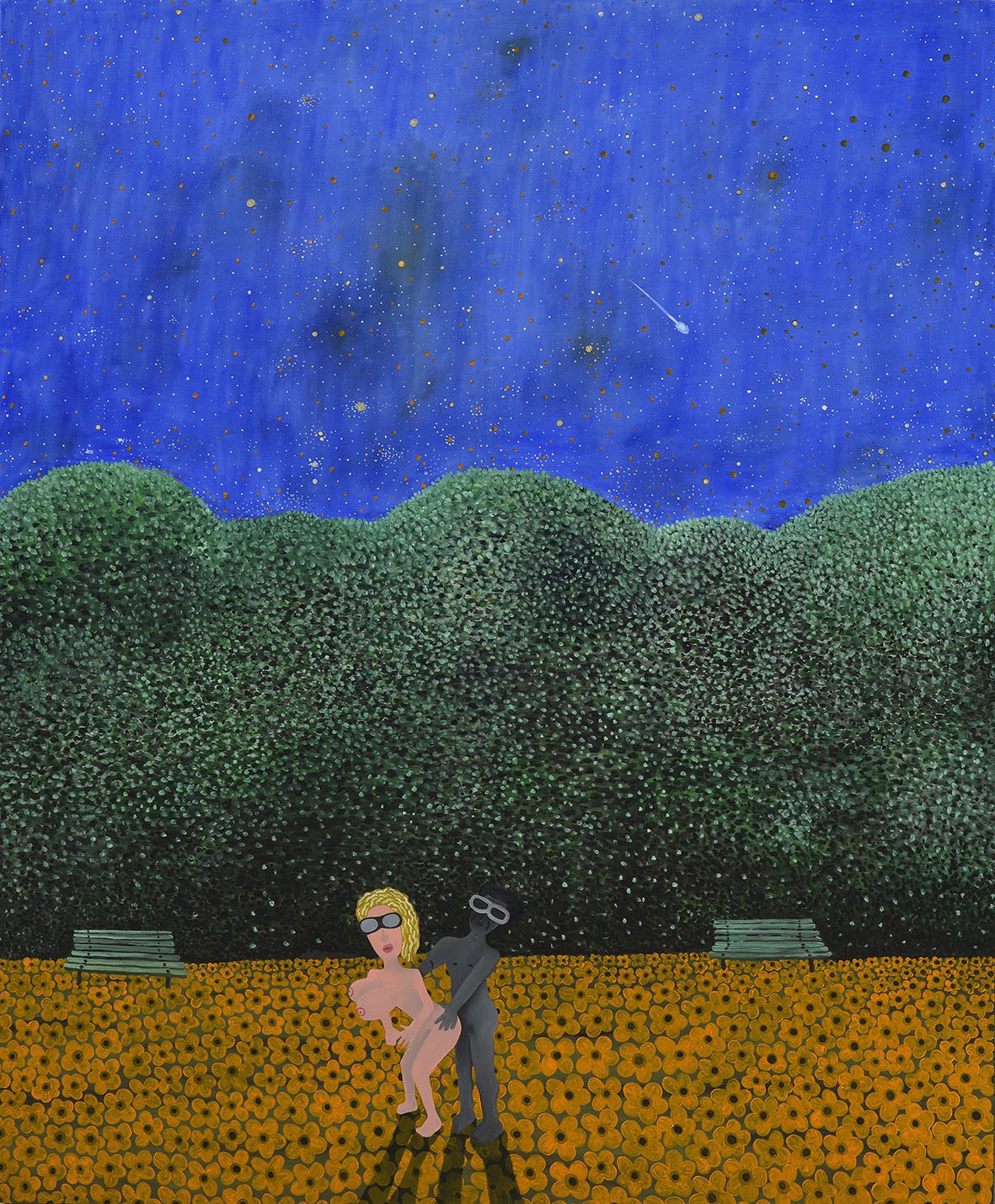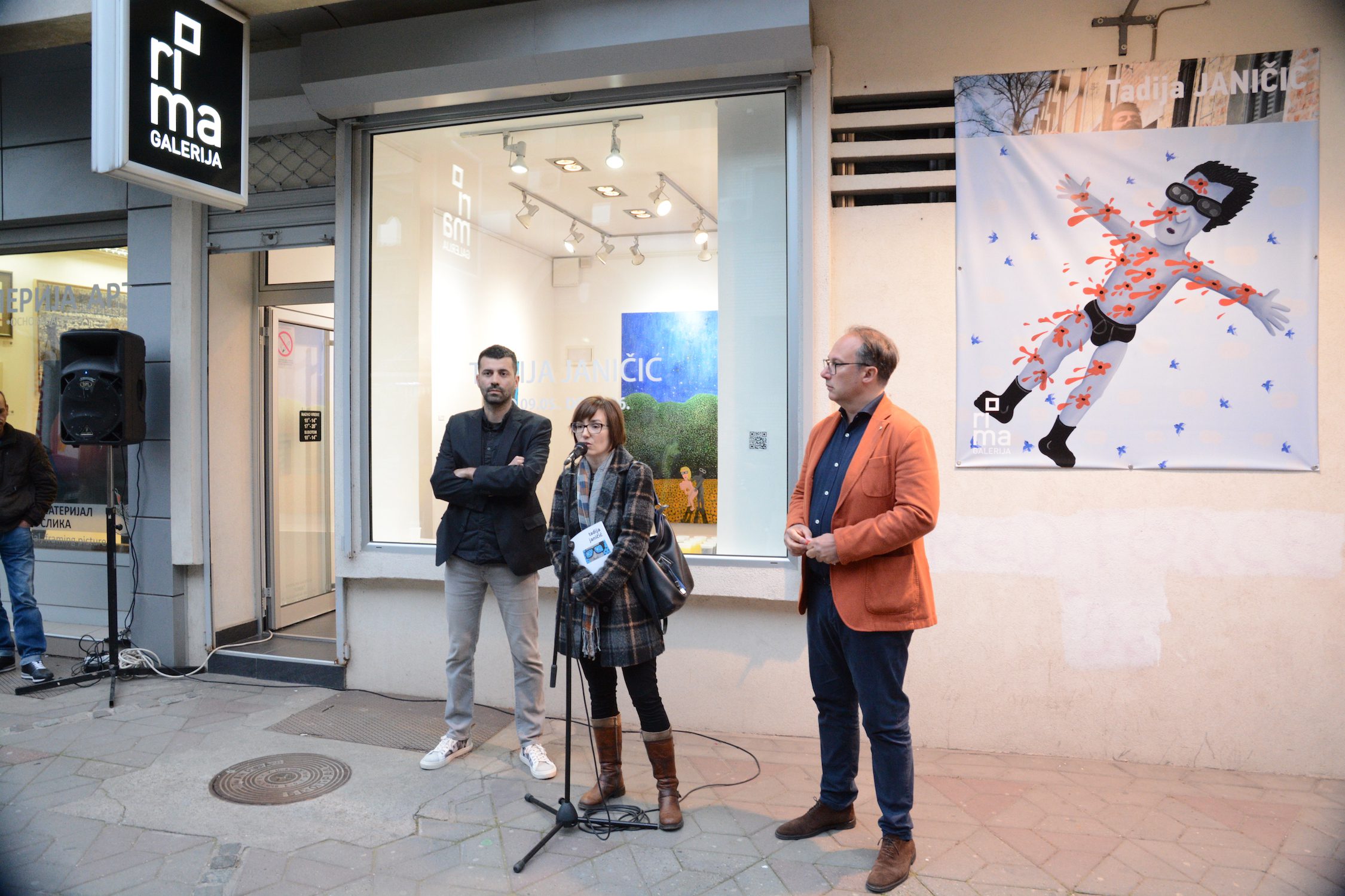 Ova serija slika i skulptura predstavlja nadogradnju Janičićeve dugogodišnje demonstracije ličnog, individualnog bunta, u kojem promiskuitetna Karolina sada igra glavnu ulogu. Njegova instrumentalizacija ‘javne nepristojnosti’, u slici i kroz sliku, još jednom potvrđuje centralni princip njegovog satiričnog delovanja u prostoru kojem pripada, i kojim on brani prepoznatljivost svoje prakse u savremenom slikarstvu mediteranskog i kontinentalnog južnoevropskog prostora: to je vizualizacija signala (neophodne) građanske neposlušnosti u kulturno-političkim uslovima utemeljenim na kultu parfimisanog izmeta. Karolina nije samo antroponim kojim lično ime ili nadimak neke nama nepoznate ženske osobe upućuje na realnu, konkretnu žensku osobu, niti istina o njenom misterioznom identitetu predstavlja isključivu privilegiju sâmog autora serije slika čiji se naslov i ‘dramski zaplet’ odnose na nju. Karolina nije žena – niti su njeni atributi ‘samo’ ženski. KAROLINA je znak kojim se Janičić upisuje u noviju istoriju slikarstva i nastavlja da otvara horizonte društveno-političke svesti na sebi svojstven način: slikom na platnu, crtežima i skulpturom, uprkos dominaciji digitalnih tehnologija i medija. U vremenima i prostorima koji, nažalost, još uvek nose breme ostrašćenih libidinalno-patriotskih poriva i neotrežnjenih teritorijalnih pretenzija i zabluda, nove Janičićeve slike ‘upakovane’ su u savršeno skrojene kostime za gospodu sa oklagijom u mozgu i za njihove ‘sisate dame’ (kako bi on sâm to suptilno opisao). Odmorite se, dakle, uz Karolinu i ništa ne brinite: sve je pod savršenom kontrolom – narednih nekoliko godina sve će biti kao i do sada, ako ne još i mnogo bolje, toplije, uzbudljivije, i uspešnije! Budite ubeđeni u to – ili pustite druge da nastave da vas ubeđuju…