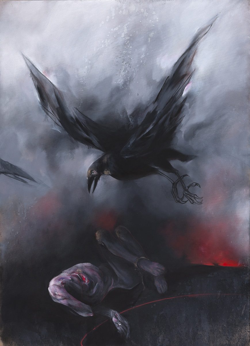 Među motivima sa izenhajmskog Raspeća jedan se izdvojio kao zasebno neiscrpni izvor nadahnuća u Veličkovićevom slikarstvu, sve do danas. U pitanju je šaka probodena klinom, dlan sa razjapljenom ranom u svom središtvu. Prizor raskrvarene ruke prikovane ekserom, probušene i zgrčene, definiše svu bol, agresivnost i nasilje čoveka nad čovekom: Zanemarujući religioznu simboliku, grč ruke se nameće kao krik. Ko je zakovao ruku? Odakle dolazi takav čin? Ko smatra prihvatiljivim da to učini drugom čoveku? Često sam isticao da je sve što slikam samo ono što jedan čovek čini drugome, ništa više od toga. (…) Šta učimo iz Grinevaldovog raspeća? Da više od telesnog mučenja, uparavo je Biće ono koje se skrnavi i poništava, njegova duša…[8] Tako u Veličkovićevoj slici ruka upija svu simboliku, postaje središnja referenca na nasilnost čoveka. Povređena i onesposobljena šaka jedan je od centralnih motiva i u najnovijim radovima. U slikama Pejzaž i Ruka probodene i vezane šake zamenjuju celokupnu figuru čoveka. Kao što bi nam topla ruka domaćina otvorila vrata porodičnog doma, ove šake postavljene u prvi plan, na samu ivicu platna, „dobrodošlica“ su u pejzaž ništavila i smrti. Na slici Gavran leva ruka je zahvaćena požarom tako da šaka obmotana kanapom deluje kao da lebdi nad usmrćenim čovekom, postajući izdvojeni motiv, osamostaljeni fatalistički znak.