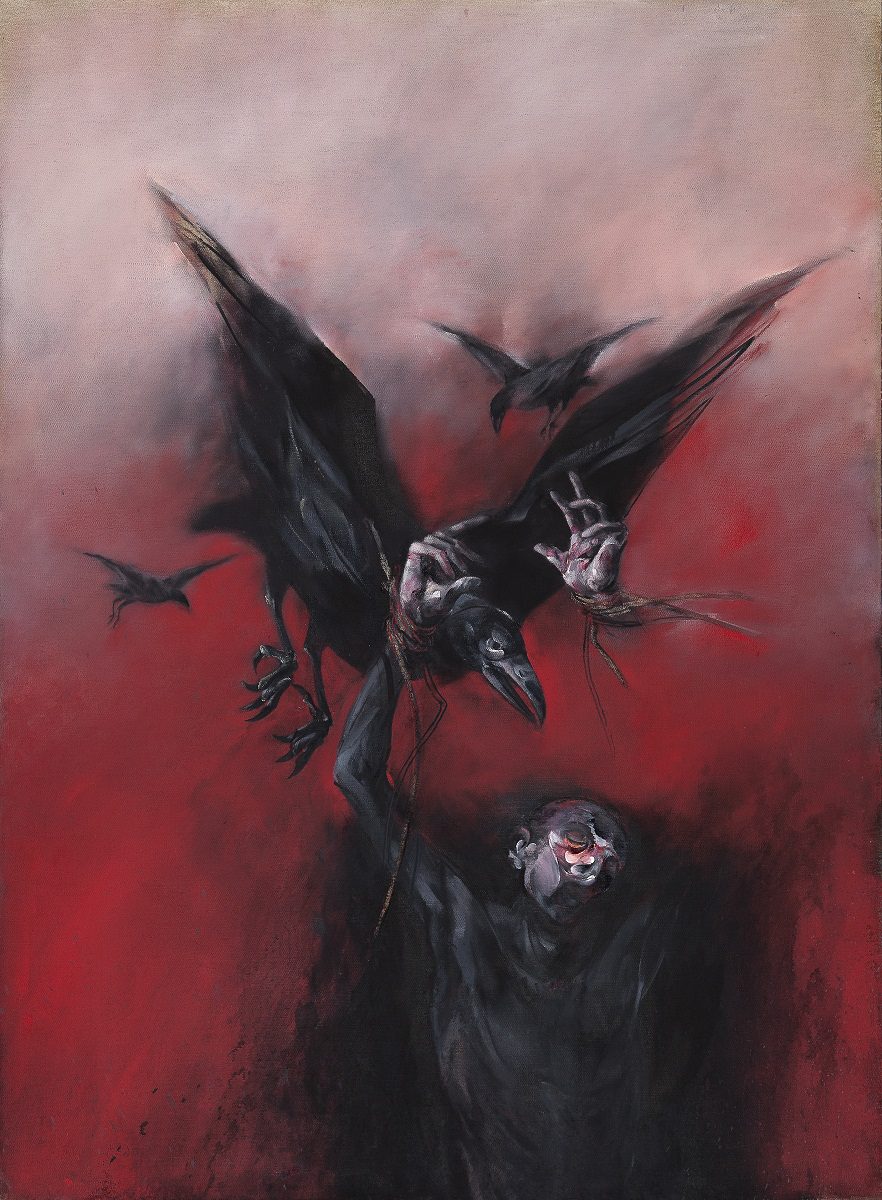 Jedna od takvih vizija u Veličkovićevom slikarstvu oslanja se na šesnaestovekovnu predstavu Raspeća sa Izenhajmskog oltara, delo Matijasa Grinevalda. Centralna figura Hrista prikazana je realistički tako da naglašava fizičku patnju i bol – od grča izdeformisana stopala i šake, mršavo telo prepuno modrica, na kome se ocrtava napetost svake žile i iz čijeg grudnog koša lipti krv i konačno lice klonulo od bola sa širom otvorenim ustima koja umesto krika ispuštaju poslednji dah. Ovakav prikaz stradanja Hristovog, koji jezivi prizor fizičkog mučeništva koristi kao najsugestivniji put do poimanja onog višeg, duševnog stradanja i žrtve, lako je uspostavio komunikaciju sa Veličkovićevim shvatanjem sveta i slike. Grinevaldova figura Hrista postaće jedna od najviše reinterpretiranih motiva u Veličkovićevom slikarstvu. Vremenom će prikaz raspetog Hrista biti depersonalizovan uklanjanjem glave sa trnovim vencem, i transformisan u brojna raspeta ali i na drugi način ubijena tela, u spaljenim opustelim pejzažima, tela na kojima kao sačuvana referenca na ne samo fizičko već i duhovno stradalništvo ostaju karakteristične rane na grudima, vezanim šakama i stopalima, kao mesta telesnih požara i simbolička jezgra sudbine čoveka.