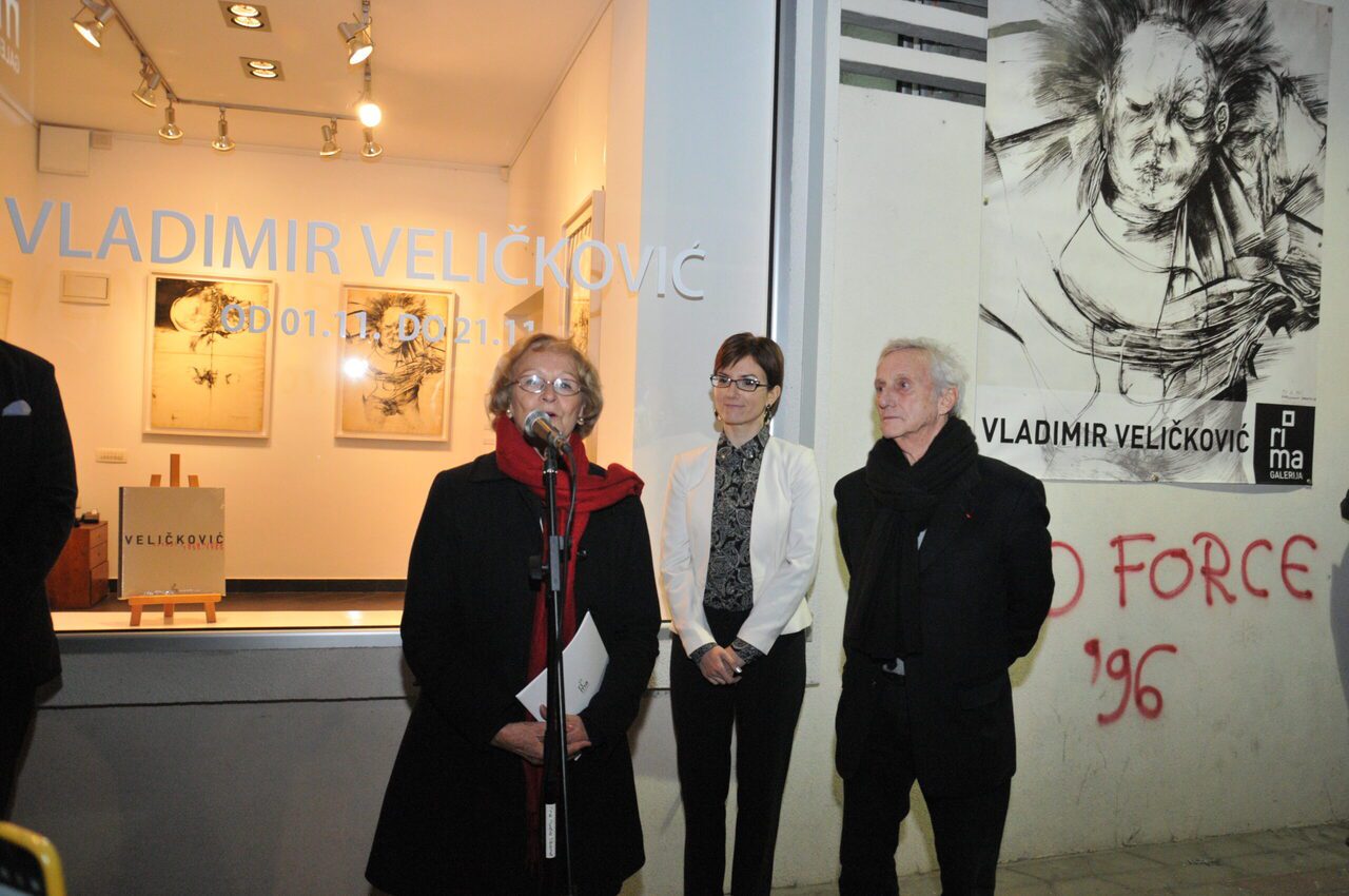 U srpskoj istoriji umetnosti ne postoji slikar koji je više od Vladimira Veličkovića posvećen predstavama smrti. Kraj ljudskog života u njegovim delima eksplicitno je nasilan – pacovi koji proždiru ljudske genitalije i cepaju anus da bi rasporili njegovo telo, muškarci tek nabijena na kolac ili oštre čekrke čija je topla, jarko crvena krv rasprsnuta po zidovima, sveže rane iz kojih izlaze meso i iznutrice – sve su to prizori koji ne vređaju naše estetske osećaje, pre svega usled odsustva banalnog fotografskog realizma, ali koji nas duboko probadaju mučninom. Njegov čovek je izranjavljena, rasporena i obezglavljena figura u čijoj su sumornoj sivoj pojavi krv i meso poslednji znaci života koji opominju na nasilje i ubrzo nadolazeću smrt. „Smrt, destrukcija, fizičko nasilje i krvava anihilacija tela – to je njegova opsesija! Ne radi se samo o smrti već o procesu, o akciji – brutalnom masakriranju i umiranju u kome vidimo žrtvu ali ne i mučitelja – o modernoj Kalvariji, trajnom mučenju i nasilju u ovom svetu‟1 Važno je primetiti da, iako prikazuje izmučene i ubijene ljude, Veličkovića ne okupira atmosfera stradalništva i emotivnog oslikavanja žrtava – njegovo slikarstvo nije epitaf na njihovim grobovima. Zločinac im namerno razbija ili odseca glavu jer samo lice koje nas gleda može da nam i pripoveda, a telo bez lica postaje samo prazna mešina, leš – forenzičarski trag o ubici. Sa druge strane taj ubica je živ, iz slike u sliku on je tu, i dok razmišljamo o njegovom nedelu mi mislimo na njega i možda mu zamišljamo lik. Sa svakim pitanjem „zašto‟ taj brutalni agresor nam se sve više uvlači pod kožu terajući nas da u porciji mučnine osetimo i titrajući ukus krivice. Tako se postepeno NN lice ubijenog i NN lice zločinca stapaju u jedan mutirani lik – istovremeno to smo mi i ubica iz današnjih novina, to je naš najbolji prijatelja i nacistički komandant, to je umetnik i sam đavo … Veličković slika potencijal zla koji leži u čoveku i koji je, jednom probuđen i oslobođen, sposoban da, uništenjem čovečnosti, istrebi čitavo čovečanstvo.